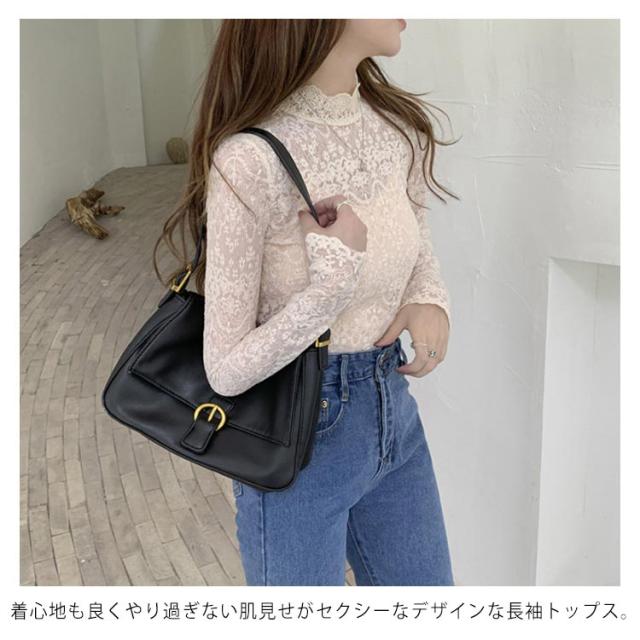 送料無料 裏起毛 レース トップス インナー 秋冬 重ね着 ハイネック レイヤード風 レディース 裏起毛 インナー レース 繊細レース 見せるインナー 長袖 大人可愛い