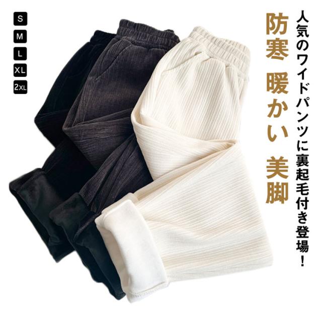 ワイドパンツ レディース 秋冬 裏起毛 コーデュロイワイドパンツ マキシ丈パンツ ガウチョパンツ 秋冬 ガウチョパンツ 防寒 暖かい 裏起毛 体型カバー ロングパンツ ゆったり 大きいサイズ ボトムズ 秋 冬 着痩せ 美脚 カジュアル 通勤 送料無料