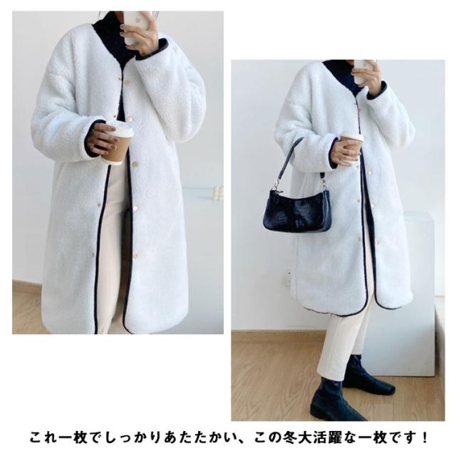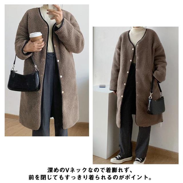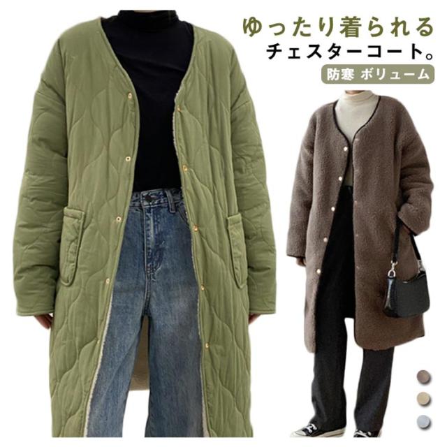 ロングコート レディース チェスターコート ボアコート ロング丈 ボアジャケット ノーカラーコート ボアノーカラーコート アウター フリース ドロップショルダー 羽織り 秋冬コート