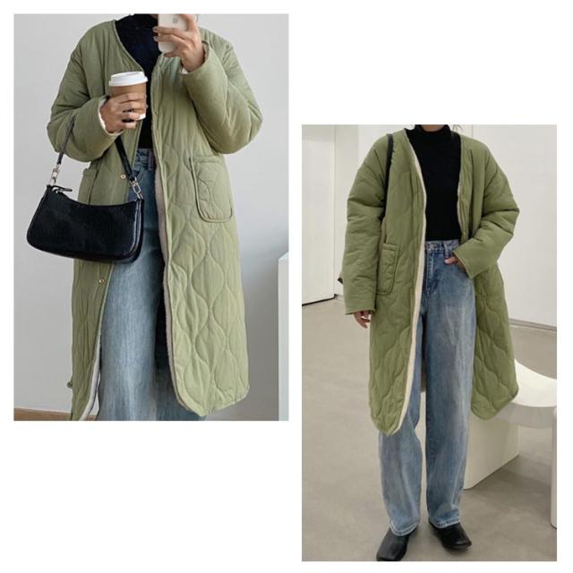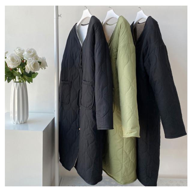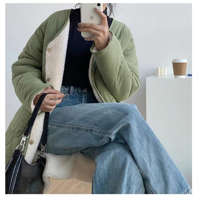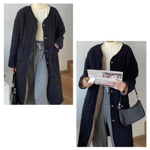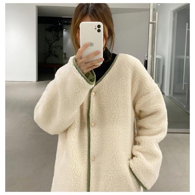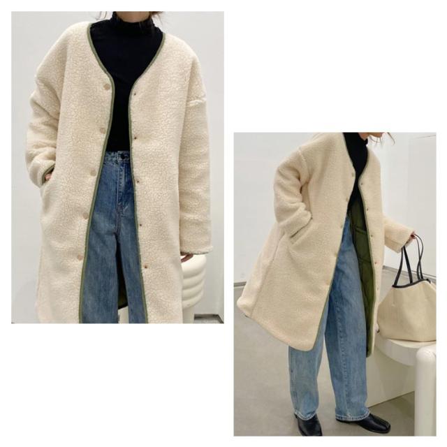 | ゆったり着られるチェスターコート。 深めのVネックなので着膨れず、前を閉じてもすっきり着られるのがポイント。 これ一枚でしっかりあたたかい、この冬大活躍な一枚です! | |