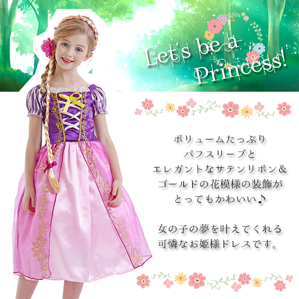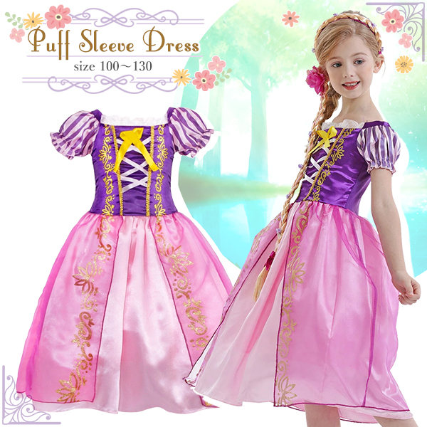 【最安値挑戦中】子供用 パフスリーブドレス Puff Sleeve Dress ラプンツェル ハロウィン クリスマス ドレス 子供服 パープル コスプレ 衣装 仮装 パーティー 誕生日 発表会 お遊戯会 結婚式 コスチューム キッズ プリンセス フォーマル お姫様 ネコポス送料無料!