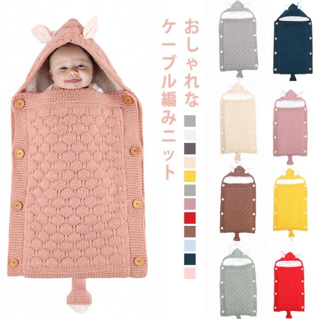 スリーピングバッグ 赤ちゃん 冬 おくるみ 秋冬 ベビー カー スリーピングバッグ 可愛い ニット ケーブル編み 裏シープボア ブランケット 寝袋 赤ちゃん 出産祝い ギフト 防寒