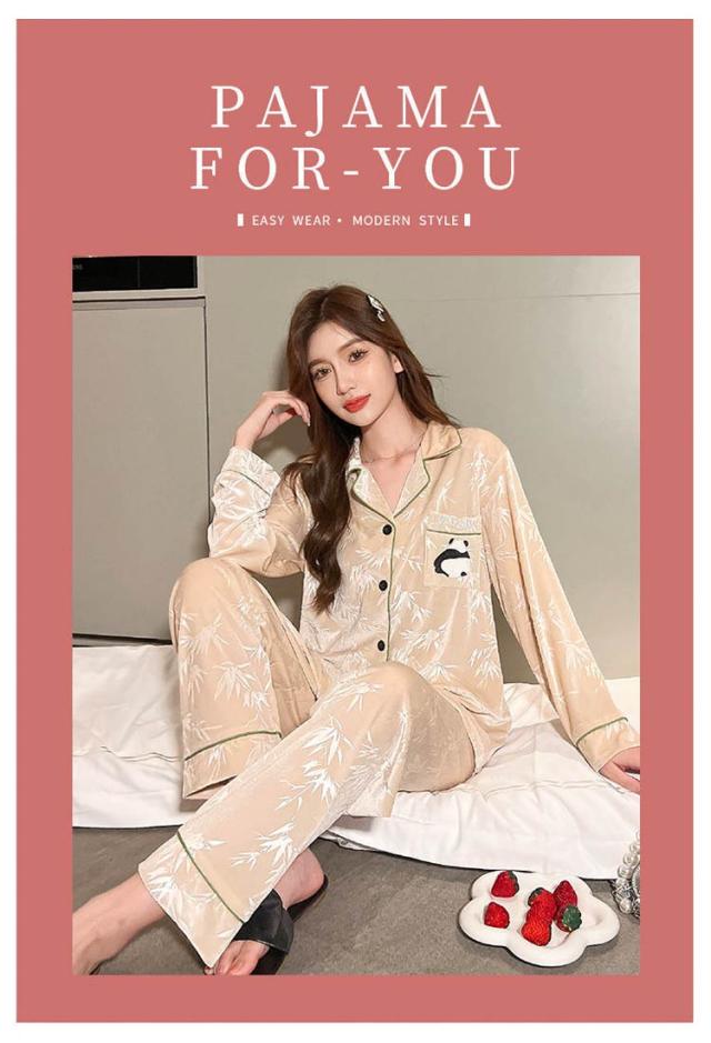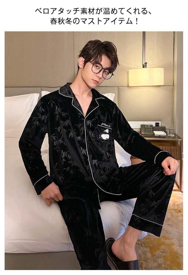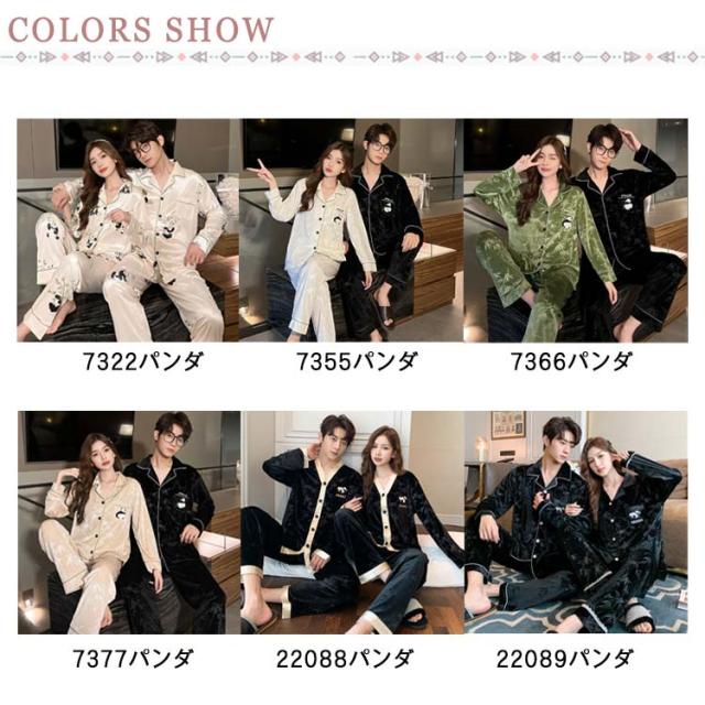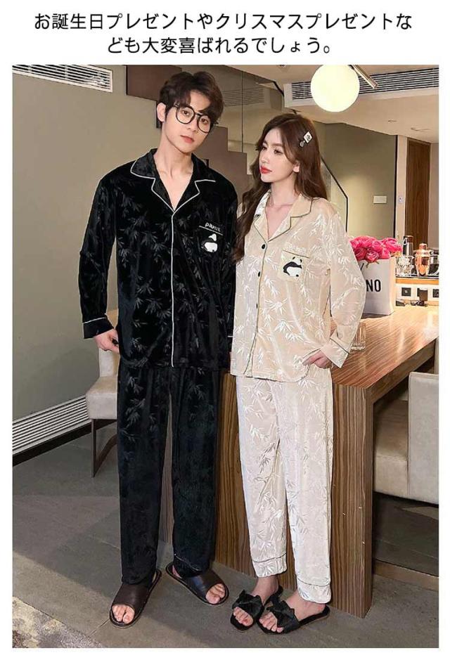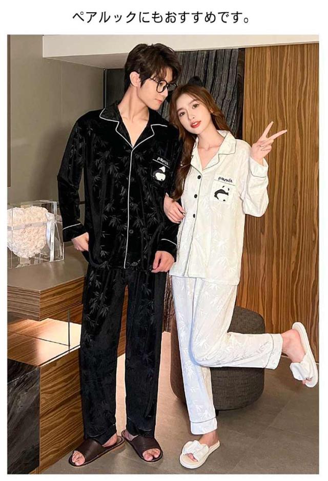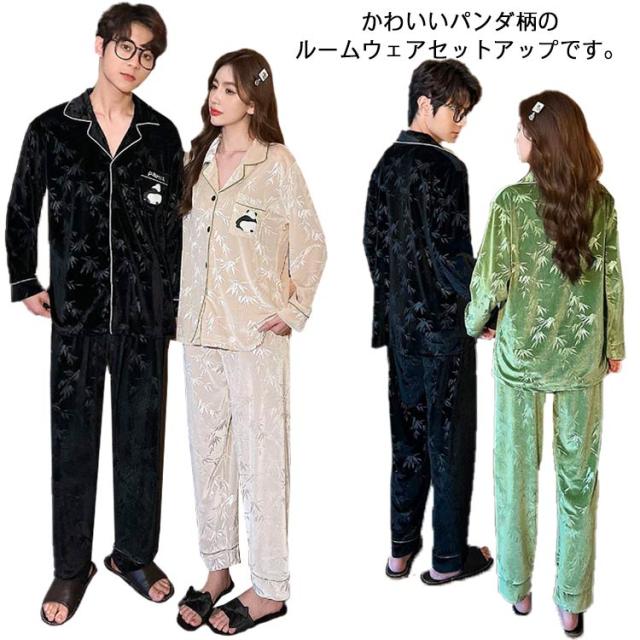 ベロアタッチ パンダ柄 上下セット 前開き 部屋着 セットアップ レディース メンズ ルームウエア ナイトウェア パジャマ 寝間着 リラックスウェア セット 大人 可愛い ペアルック M L XL 2XL