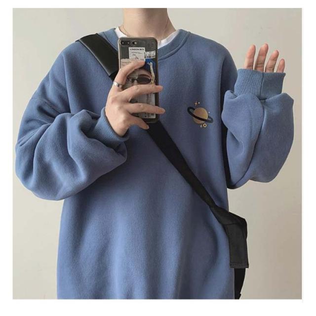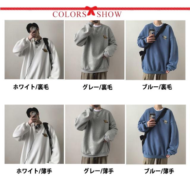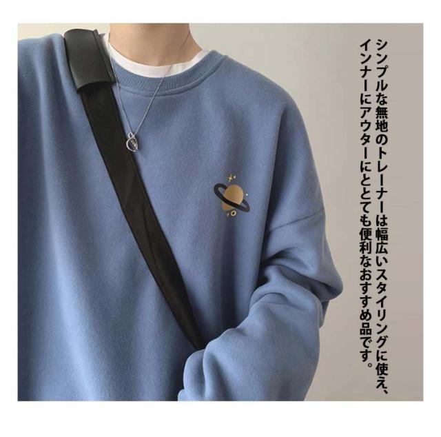送料無料 スウェット トレーナー パーカー メンズ 厚手 無地 裏起毛パーカー プルオーバー クルーネック 長袖 プリント 宇宙柄 星柄 トップス 秋冬 暖かい 大きいサイズ 男女兼用 あったか ペアルック ルームウェア 部屋着