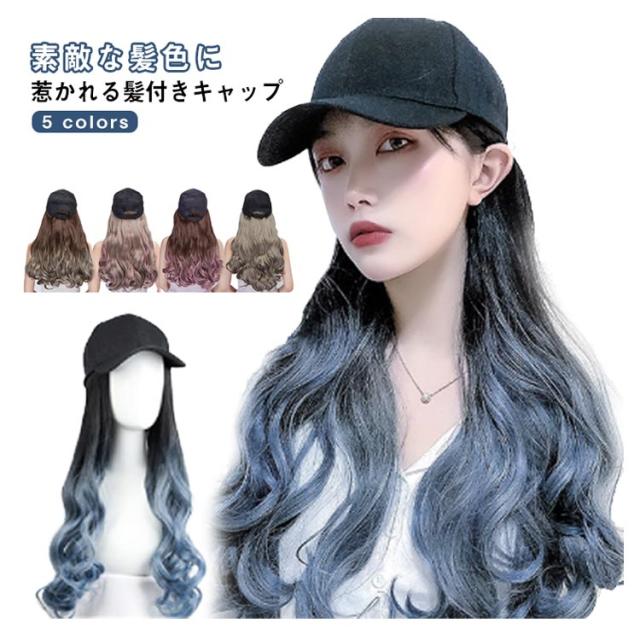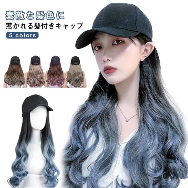 選べる5色 髪付き帽子 帽子ウィッグ ウィッグ付きキャップ ロング カール ウェーブ 巻き髪 髪付きキャップ 送料無料 医療用帽子 帽子一体型 コスプレ ダンス オシャレ