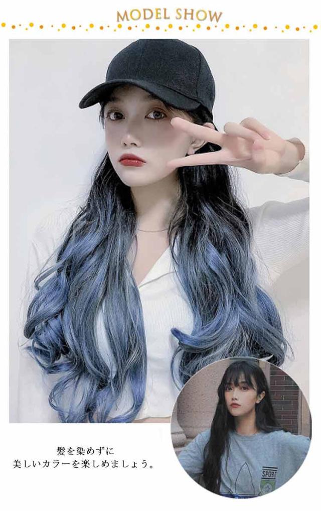 | 素敵な髪色に惹かれる髪付きキャップ。 髪を染めずに美しいカラーを楽しめましょう。 帽子のように被るだけで簡単でイメージチェンジが出来ちゃう♪ ふんわりした空気感のあるロングの巻き髪で女性らしい魅力が放ちます。 通気性に優れたキャップ素材なので蒸れにくく、ロングシーズン着用できます。 サイズ調節できるから、頭にピッタリフィットします。 | |