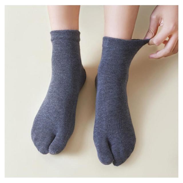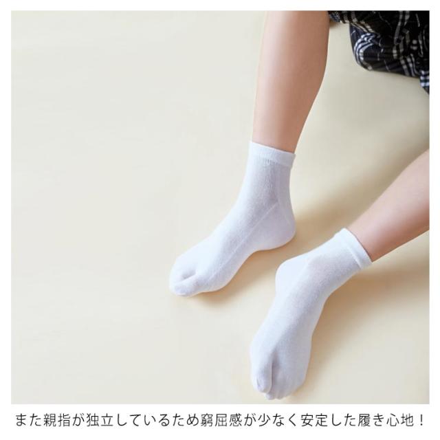 | シンプルなデザインで普段用や学校用としても使える、無地の足袋ソックス2足セット♪ 足袋ソックスは5本指ソックスと比べても非常に履きやすくなっています! また親指が独立しているため窮屈感が少なく安定した履き心地! 程よい厚さの生地で、履き心地・肌触り 抜群◎! | |