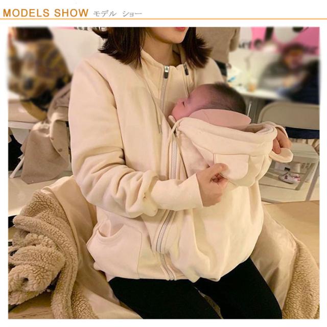 ママコート ダッカー付き パーカー 抱っこ マタニティ コート パーカー 長袖 授乳服 裏起毛 ボア 厚手 2WAY 取り外し可能 産前 産後 防寒 秋冬 あたっか 前開き アウター 男女兼用 抱っこ紐パーカー おんぶコート フード付き 大きいサイズ パパコート M-4XL 送料無料