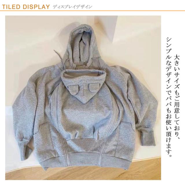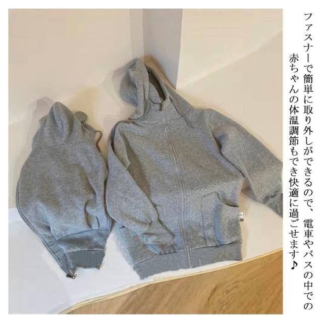 | 赤ちゃんを抱っこしたまま羽織れるダッカー付きパーカー。 裏起毛なので秋冬のアウターに最適! フードつきで頭から足先まで赤ちゃんを寒さから守ります! ファスナーで簡単に取り外しができるので、電車やバスの中での赤ちゃんの体温調節もでき快適に過ごせます♪ 取り外し可能なダッカー付きなので、産前産後ずっと活躍してくれる優秀アイテムです。 裏起毛なのでママもお子様もあたたかく過ごせる優秀アウターです。 大きいサイズもご用意しており、シンプルなデザインでパパもお使い頂けます。 | |