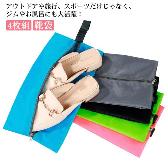 4枚組 靴袋 シューズバッグ シューズケース シューズポーチ 防水 ファスナー付き 靴入れ 持ち運び 軽量 アウトドア 旅行 子供 トラベルグッズ シューズ入れ スニーカー 水筒バッグ スパイク入れ サッカー バスケ バレー 野球 送料無料