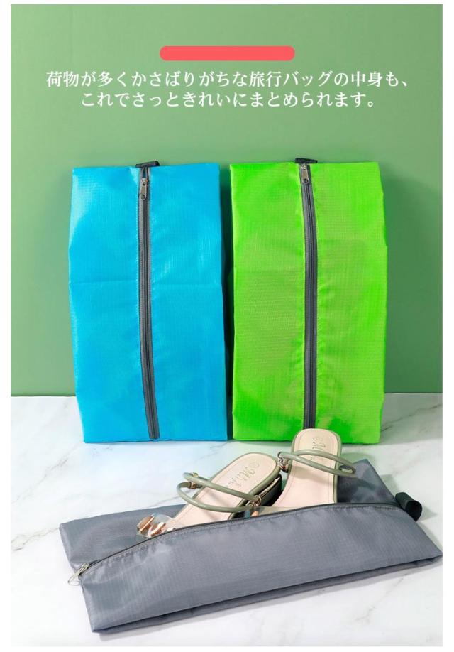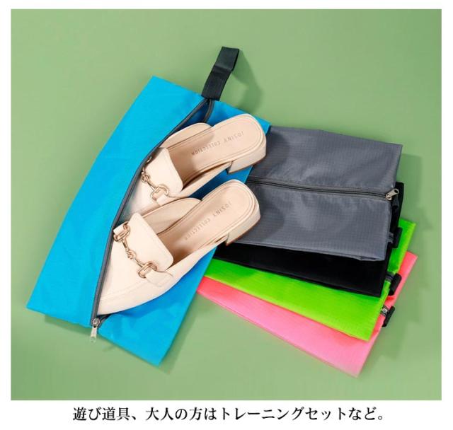 | アウトドアや旅行、スポーツだけじゃなく、ジムやお風呂にも大活躍! 他の荷物にシューズが直接触れないから、汚れてはいけない衣類とも分けての収納が出来るのでおすすめです。 荷物が多くかさばりがちな旅行バッグの中身も、これでさっときれいにまとめられます。 シューズを入れるだけでなく、お子様の着替えや 遊び道具、大人の方はトレーニングセットなど 用途に合わせて使い分けることが可能です。 | |