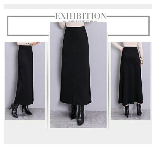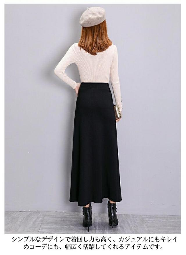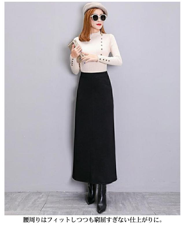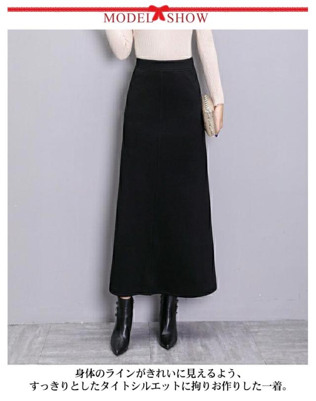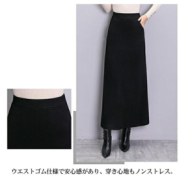 裏起毛 スカート タイトスカート ロング マキシ丈 ロングスカート タイト ストレンチ 通勤 通学 オフィス フォーマル 秋 冬 ボトムス ゴムウエスト レディース 30代 40代 50代 無地 ブラック 黒 【送料無料】