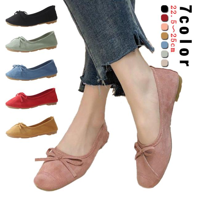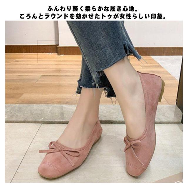 バレエシューズ 【スエード】 バレエシューズ 黒 レディース リボンモチーフ 靴 フラット ラウンドトゥ スエード バレエシューズ オフィス フォーマル ペタンコ 疲れない バレエ 小さいサイズ 大きいサイズ ローヒール バレエ