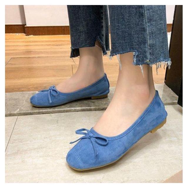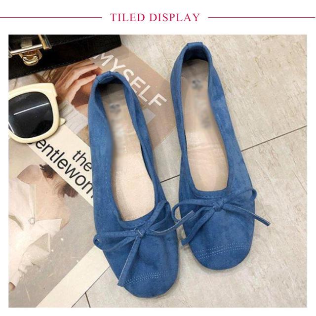 | ふんわり軽く柔らかな履き心地。ころんとラウンドを効かせたトゥが女性らしい印象。 ちょこんと品よくついたリボンがアクセントになって大人可愛さをプラス。 屈曲性のあるソールと柔らかいアッパー素材を採用し歩いた時もストレスなく安心した履き心地です。 超軽量でぺたんこなので重さを感じさせません。 | |