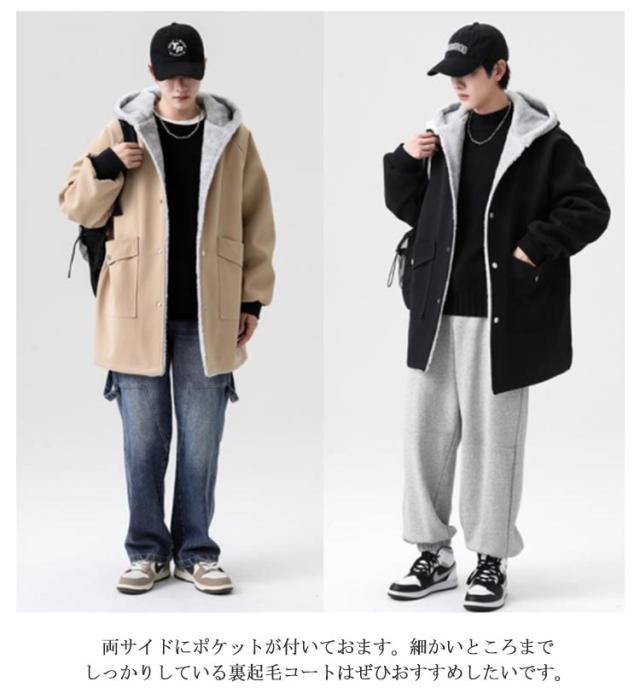 モッズコート ボアコート 裏ボア メンズ アウター 裏起毛 ブルゾン フード付き コート ロングコート 防寒 保温 もこもこ 厚手 あったか 大きいサイズ おしゃれ カジュアル ビジネス 通勤 通学 送料無料