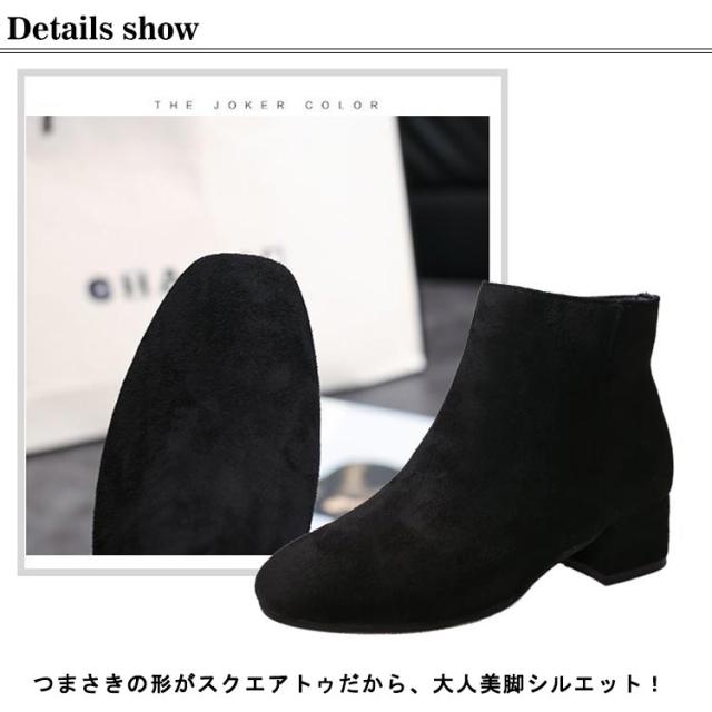 | 秋冬の定番。シンプルだから合わせやすいアンクルショートブーツ。 つまさきの形がスクエアトゥだから、大人美脚シルエット! また季節感溢れたスエード調生地が脚を細く魅せます。 低反発&裏地クッション仕様で柔らかな裏起毛も暖かい。 4cm太めのヒールが歩きやすく抜群の安定性もあり、一気に女っぽい印象をプラス。 トレンドと女らしさを兼ね備えた美脚ブーツです。 | |