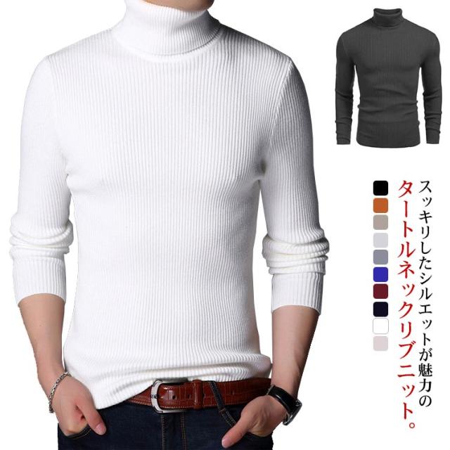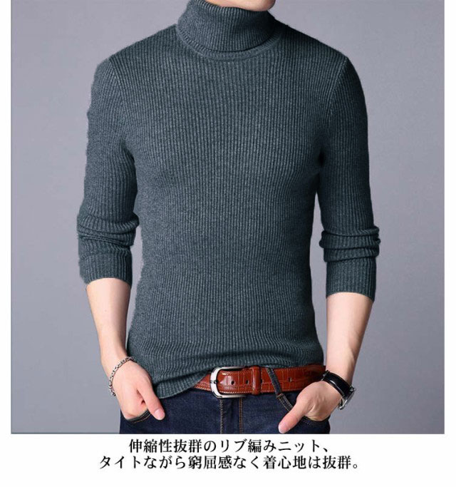メンズ タートルネック セーター リブニット 長袖 ニット トップス ハイネック 無地 プルオーバー ニットセーター タイト 細身 男性 スリム 秋冬 インナー オシャレ BITTER ビター系 メンズニット キレイ目 カジュアル 暖かい 防寒