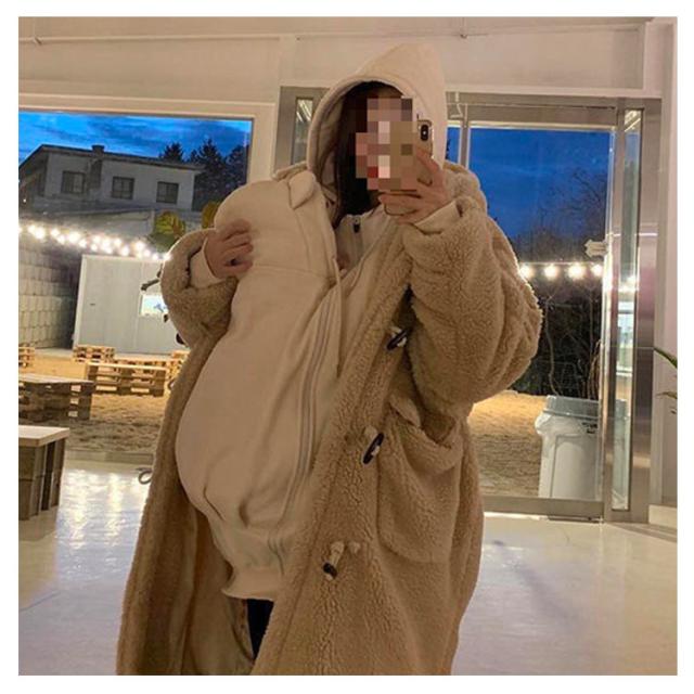 ママコート ダッカー付き パーカー 抱っこ マタニティ コート パーカー 長袖 授乳服 裏起毛 ボア 厚手 2WAY 取り外し可能 産前 産後 防寒 秋冬 あたっか 前開き アウター 男女兼用 抱っこ紐パーカー おんぶコート フード付き 大きいサイズ パパコート M-4XL 送料無料