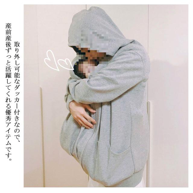 | 赤ちゃんを抱っこしたまま羽織れるダッカー付きパーカー。 裏起毛なので秋冬のアウターに最適! フードつきで頭から足先まで赤ちゃんを寒さから守ります! ファスナーで簡単に取り外しができるので、電車やバスの中での赤ちゃんの体温調節もでき快適に過ごせます♪ 取り外し可能なダッカー付きなので、産前産後ずっと活躍してくれる優秀アイテムです。 裏起毛なのでママもお子様もあたたかく過ごせる優秀アウターです。 大きいサイズもご用意しており、シンプルなデザインでパパもお使い頂けます。 | |