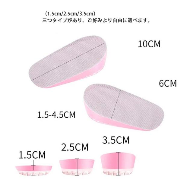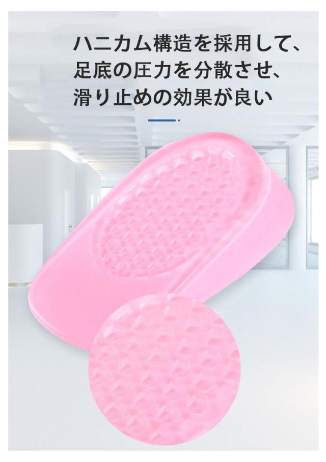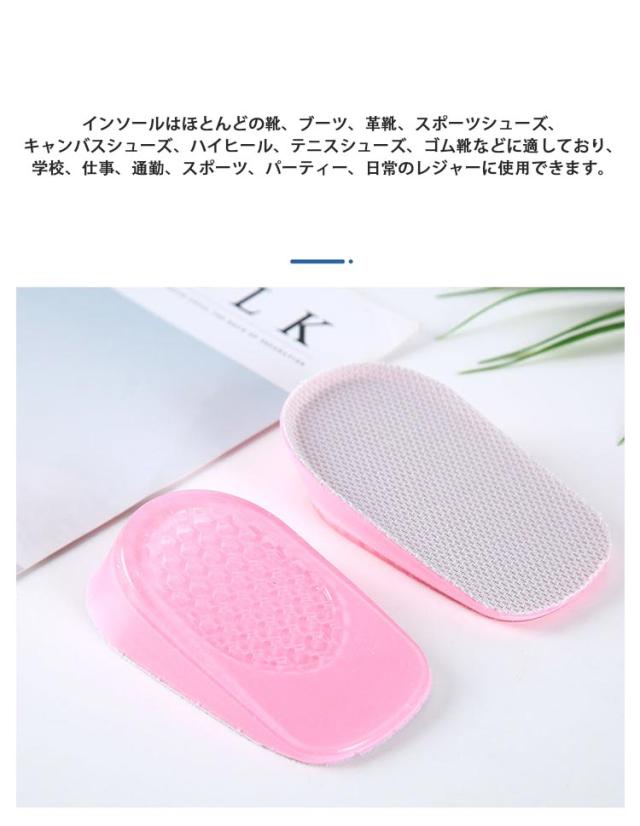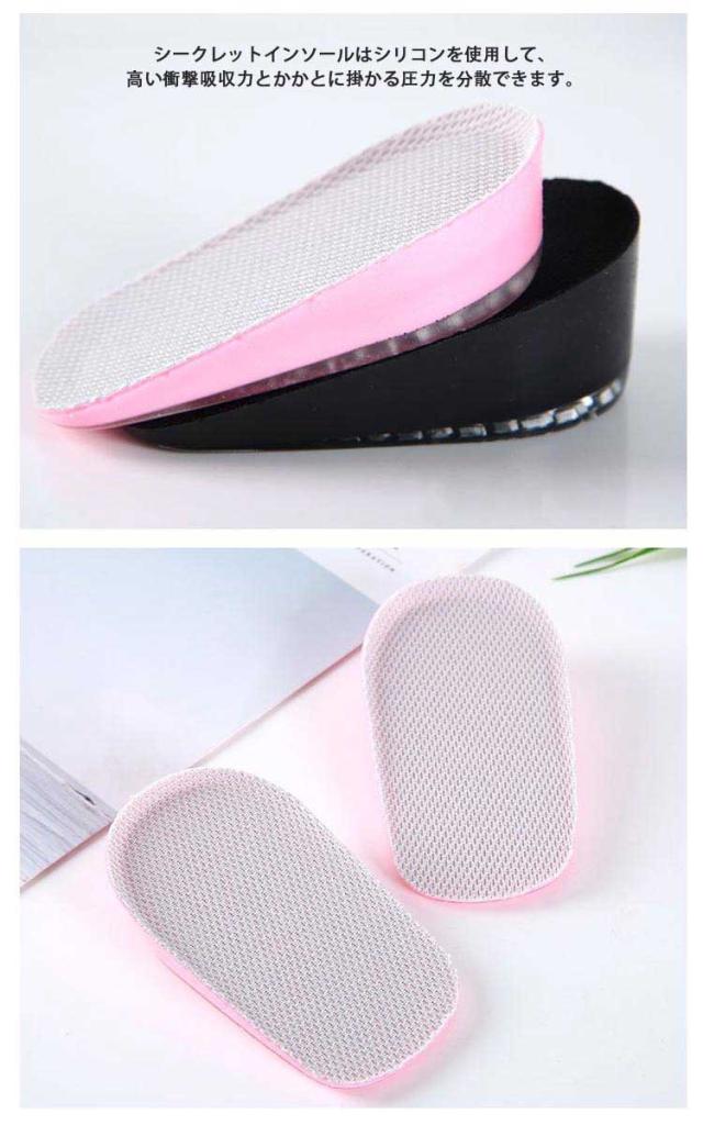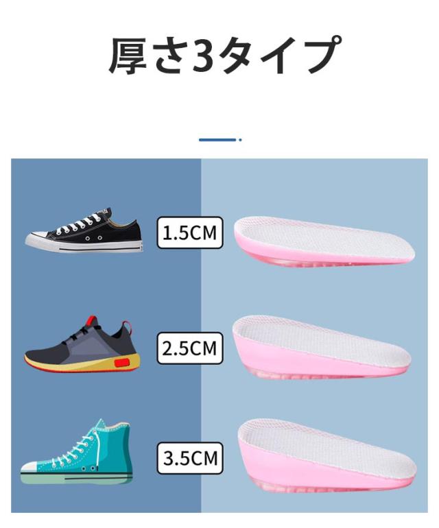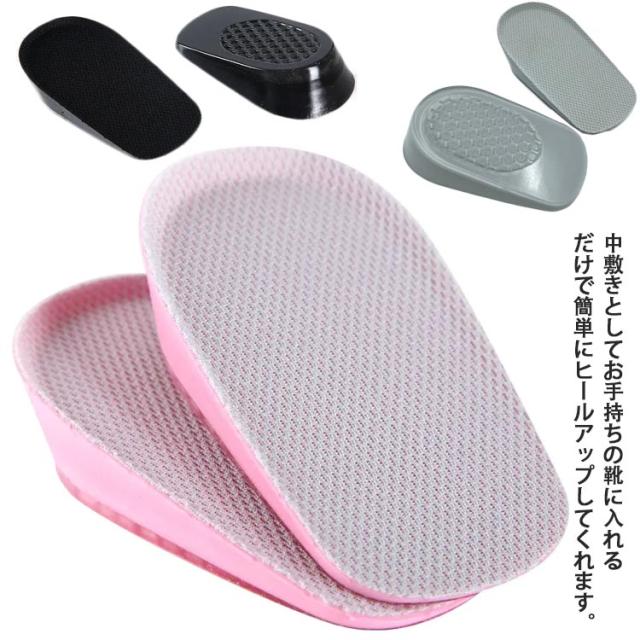 選べる高さ3サイズ 中敷き インソール 2双セット かかとクッション レディース メンズ インヒール 身長アップ 半敷タイプ シリコン 衝撃吸収 秘密身長UP 滑り止め 美脚 男女兼用