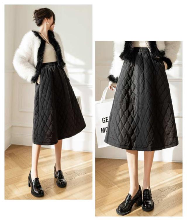 | しっかり熱を閉じ込めるフェイクダウンが詰まった暖かいキルティングスカート。 腰周りはすっきり設計で、厚みのある素材でも着膨れしにくいのがポイント! ウエストゴムで着脱もスムーズに。ポケットも付き。 エレガントなフレアシルエットで、大きく広がるAラインを描きます。 軽く、動く度にふわっと揺れるので、重たくなりがちな秋冬コーデがレディーな印象に変わります。 普段はもちろん、パーティー・結婚式・発表会・女子会などフォーマルにもカジュアルにも。 | |