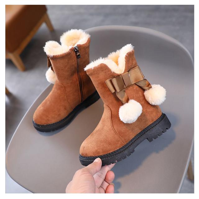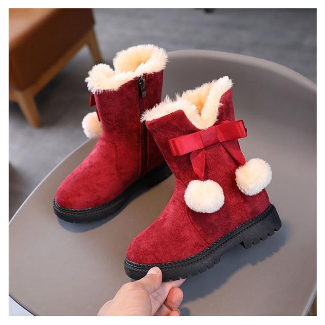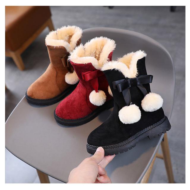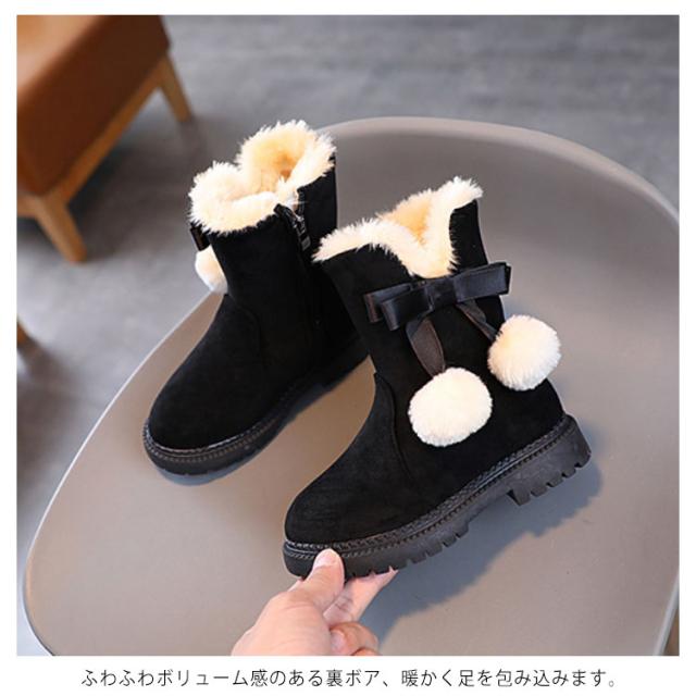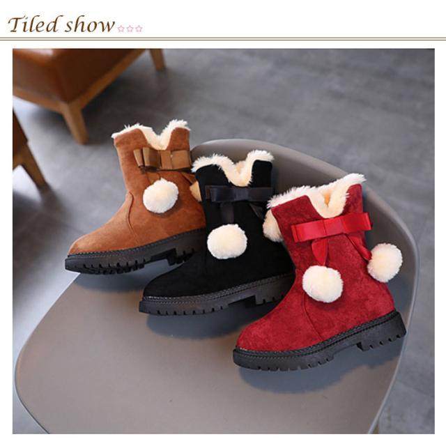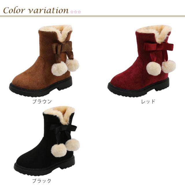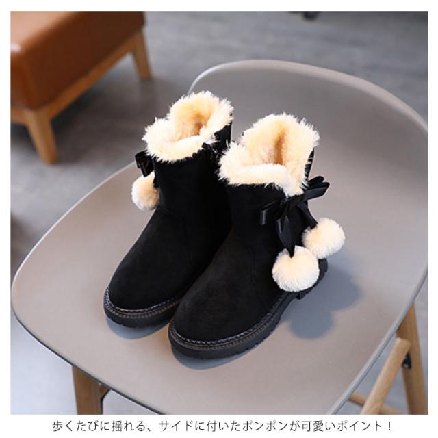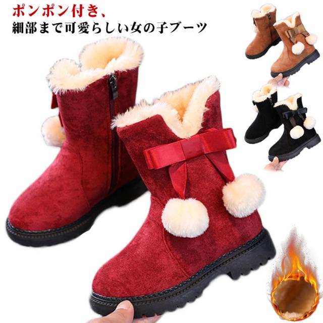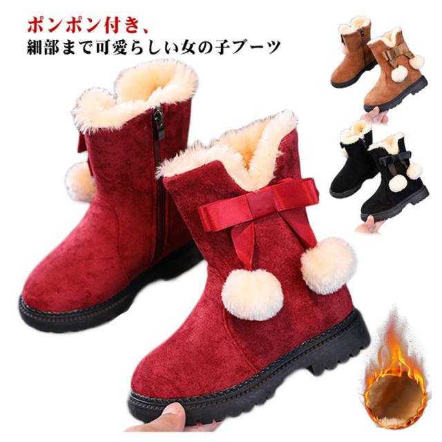 【送料無料】キッズ ブーツ 女の子 もこもこ 裏起毛 スノーブーツ ショート丈 ポンポン付き 可愛い 内ボア 履きやすい 雪遊び 滑らない シューズ 子供靴 あったか 快適 防寒着 通園 通学 おしゃれ カジュアル アウトドア 誕生日 クリスマス ギフト プレゼント