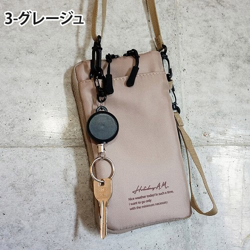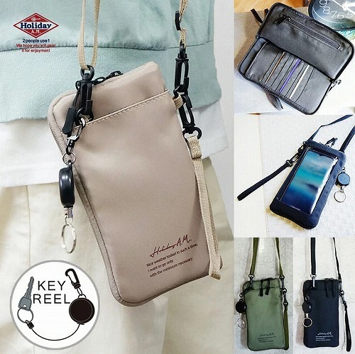 | 特徴 | 最低限必要な物だけ入れて気軽に持ち歩きできるスマホポーチです。 コンパクトサイズでお出掛けや旅行に大活躍の ショルダーバッグになります。 ファスナーを開けると、カード収納とファスナーポケット、 携帯電話のポケットがあります。 バッグ背面がクリアになっているので、 スマホを収納したまま操作が可能。 また、伸びるリール付きで、 鍵を付けて前面のポケットに収納することができます。 ショルダーを外して付属のストラップを付け、 バッグに収納するバッグinバッグとしても使えます。 アクセサリー感覚でネックポーチのスタイルで付けたり、 シンプルなコーデのアクセントにもなります。 外側ポケット×1、内側クリアポケット×1、 カード収納×8、ファスナーポケット×1です。 |