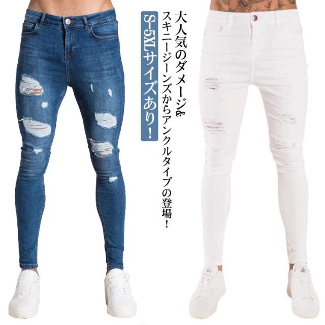 S-5XL ダメージジーンズ スキニー メンズ デニム スキニーパンツ ダメージ加工 ストレンチ Gパン 大きいサイズ アンクル丈 スキニーデニム カットデニム ジーパン ジーンズ アメカジ ボトムス LL XL 2XL 3XL 4XL 5XL 【送料無料】