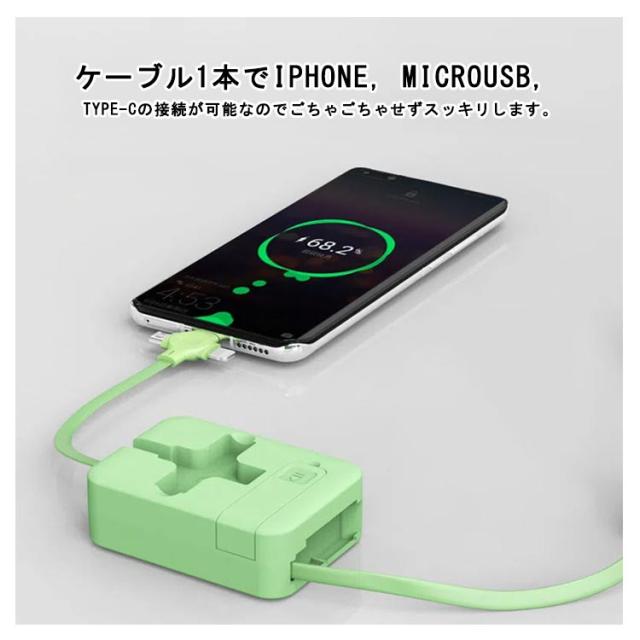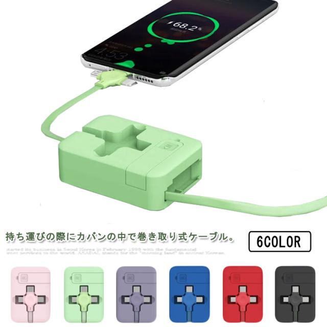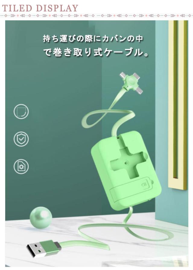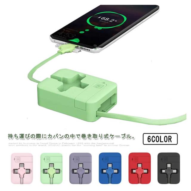 3in1充電ケーブル 巻き取り ライトニングケーブル スタンド付き iPhone Android Type-C Lightning microUSB 巻取り式 アンドロイド USB 充電ケーブル micro usb アンドロイド アイフォン 同時給電 持ち運び データ転送 多機能