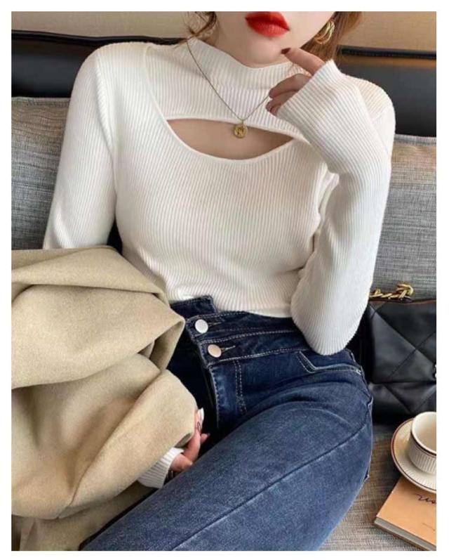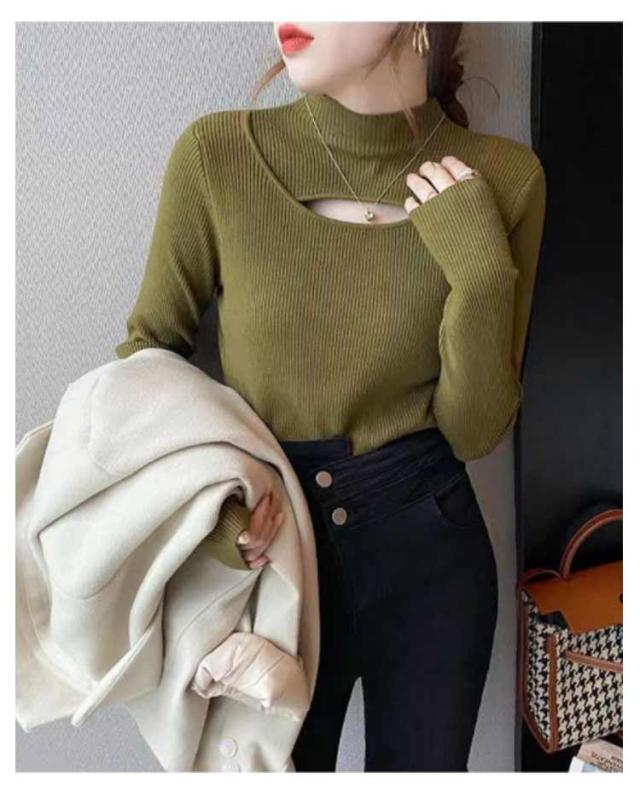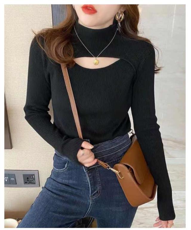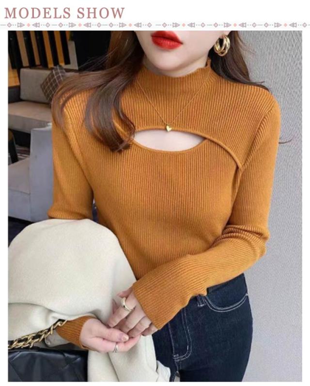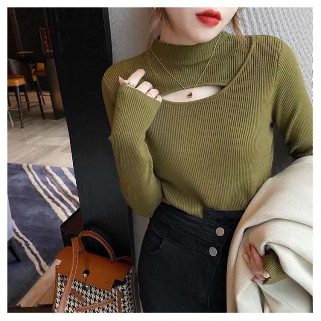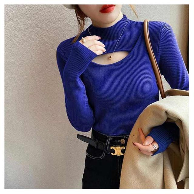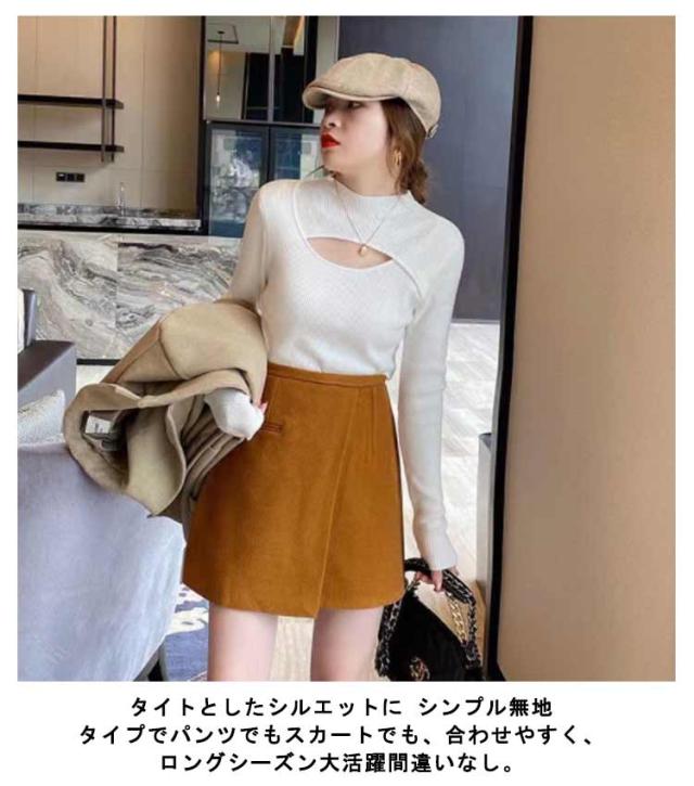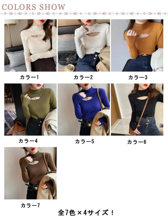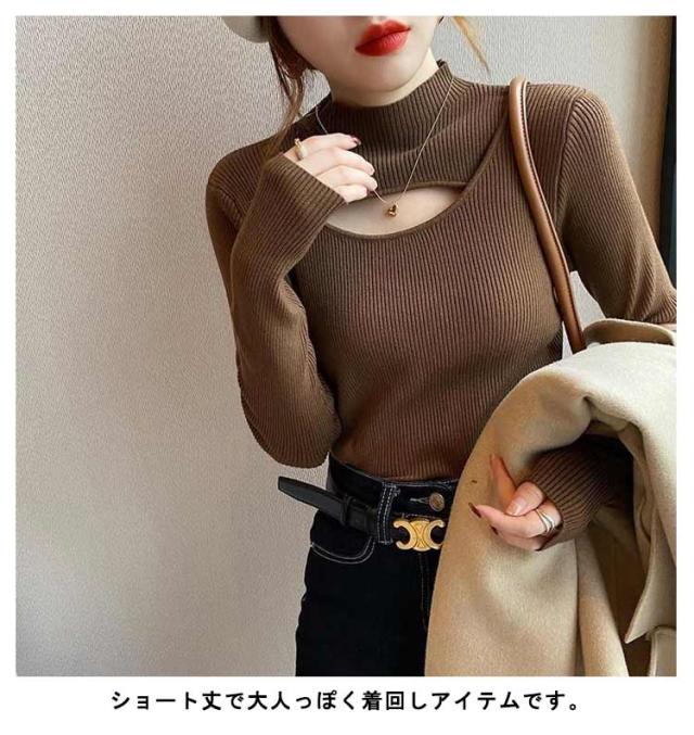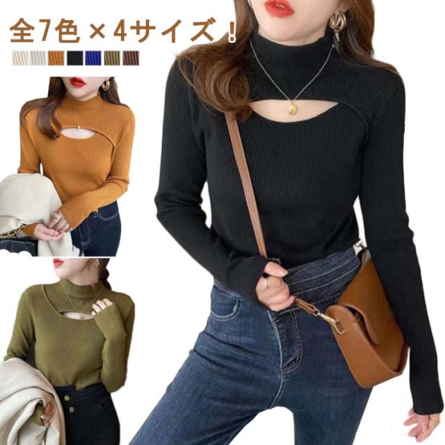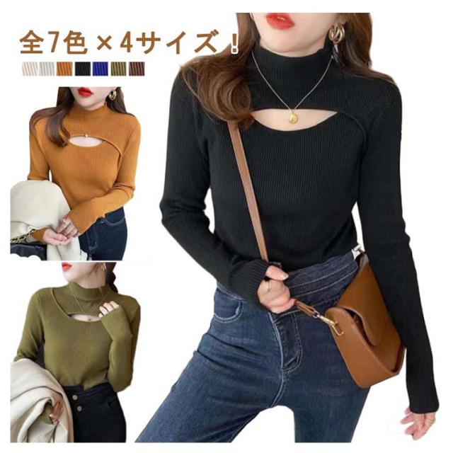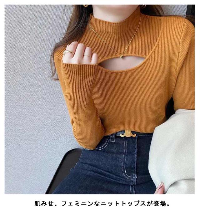 露出 ニット トップス セーター レディース モックネック 長袖 肌みせ ニットセーター インナー レイヤード 大きいサイズ 可愛い きれいめ 暖かい 秋冬 胸開き フェミニン 20代 30代 40代 50代 S M L XL