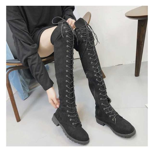 編み上げ ロングブーツ ニーハイブーツ レースアップ レディース ブーツ ローヒール サイドファスナー 美脚 着?せ 秋冬 コンフォートブーツ 暖かい おしゃれ かわいい 22.0-26.5cm