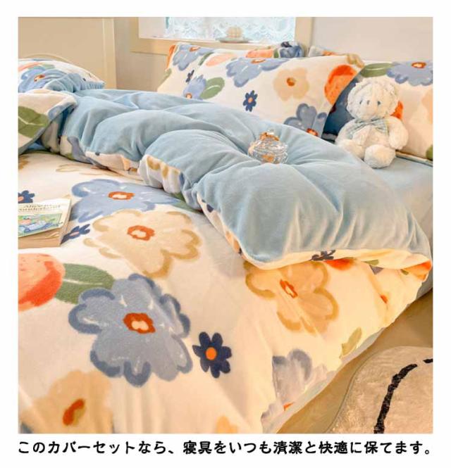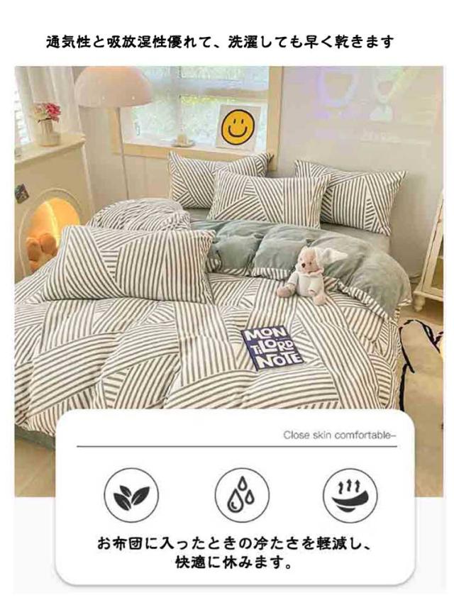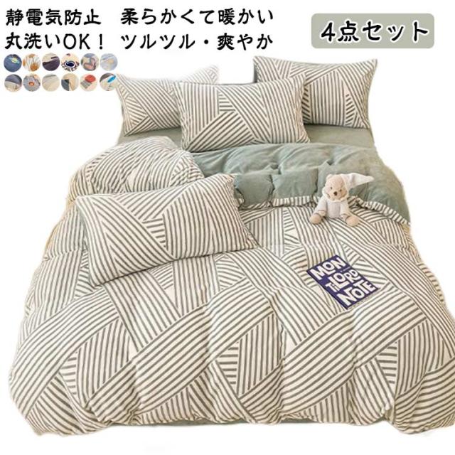 冬用 布団カバー 4点セット ダブル 掛け布団カバー 北欧 あったか マイクロファイバー 冬用 静電気防止 寝具カバーセット フラットシーツ 掛け布団カバー 枕カバー 洗い替え 肌に優しい 丸洗いOK 暖かい お洒落