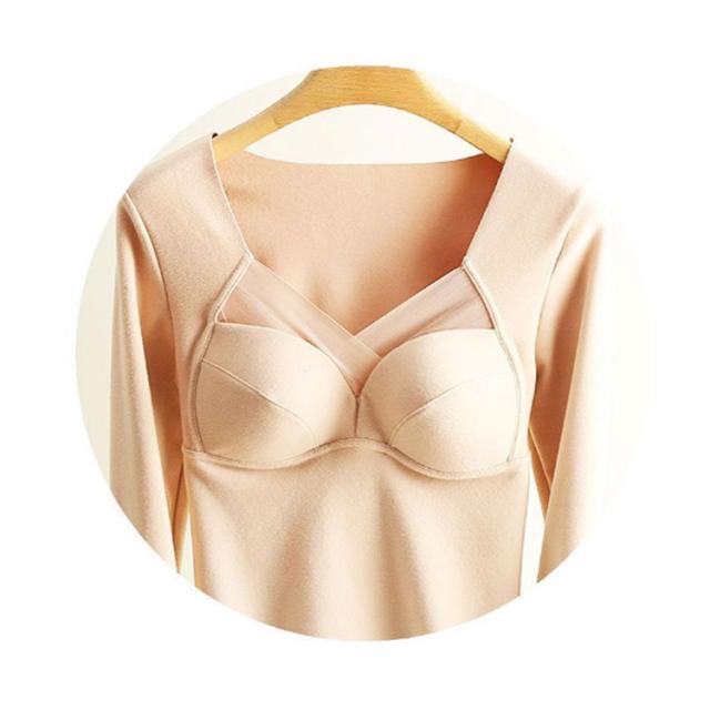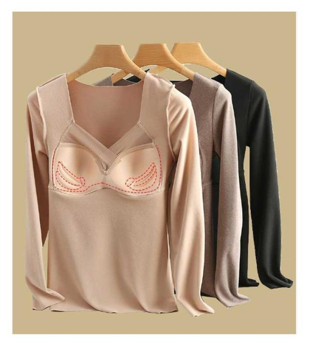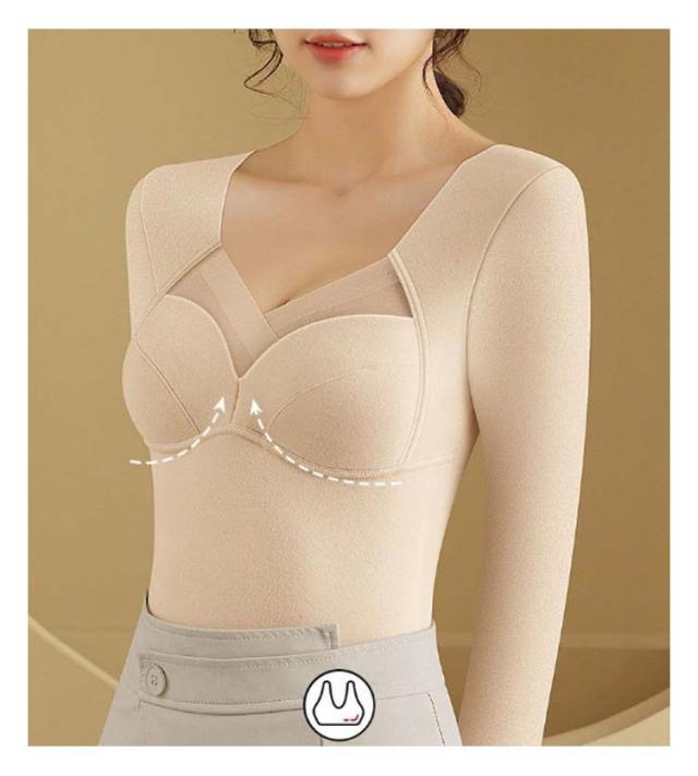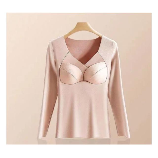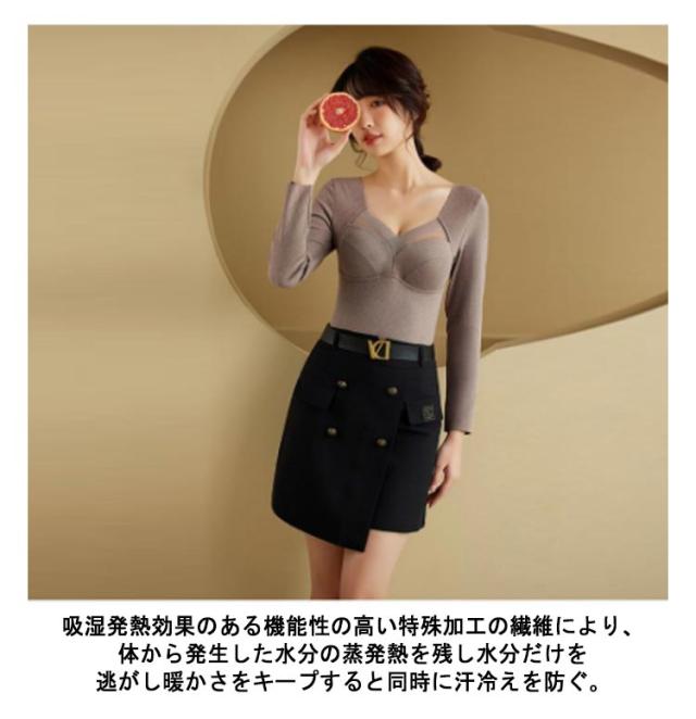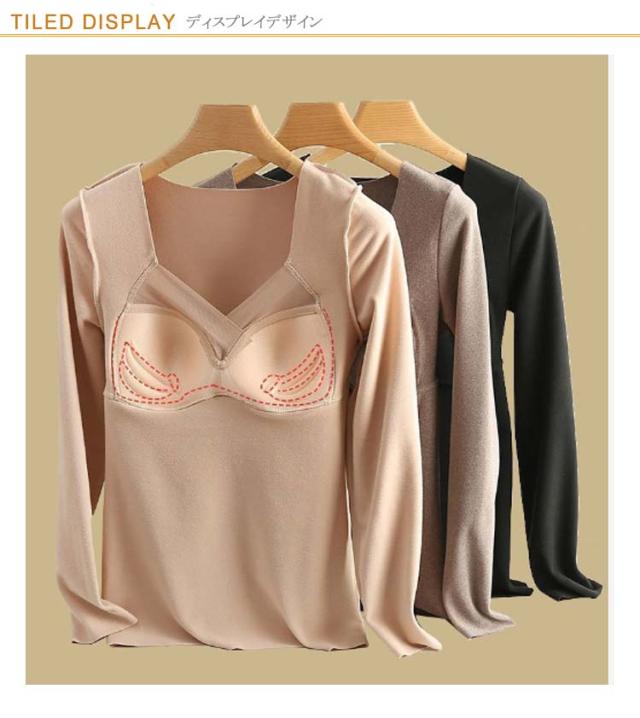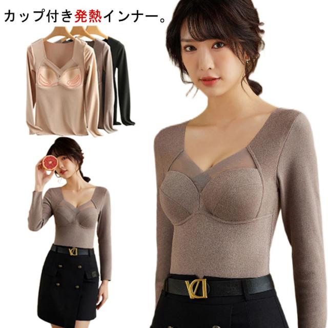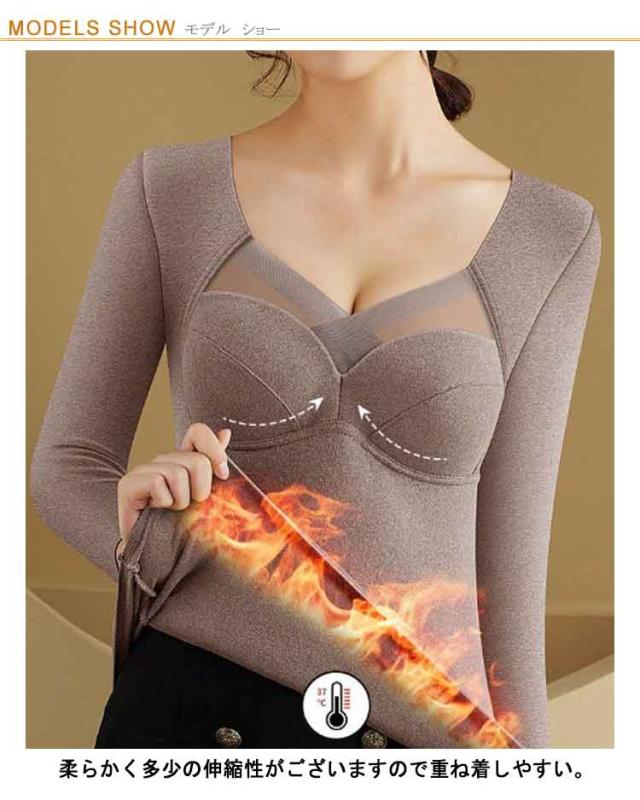 カップ付き 発熱インナー 防寒インナー レディース インナーヒート tシャツ tシャツ 温感インナー 起毛 極暖発熱 温かい 暖かい 裏起毛 発熱 防寒 長袖シャツ ブラ インナー 一体型 Vネック 補整 下着 肌着 アンダーウェア 大きいサイズ ストレッチ 秋冬 カットソー 送料無料
