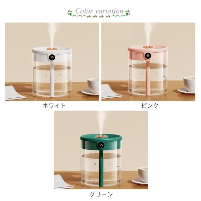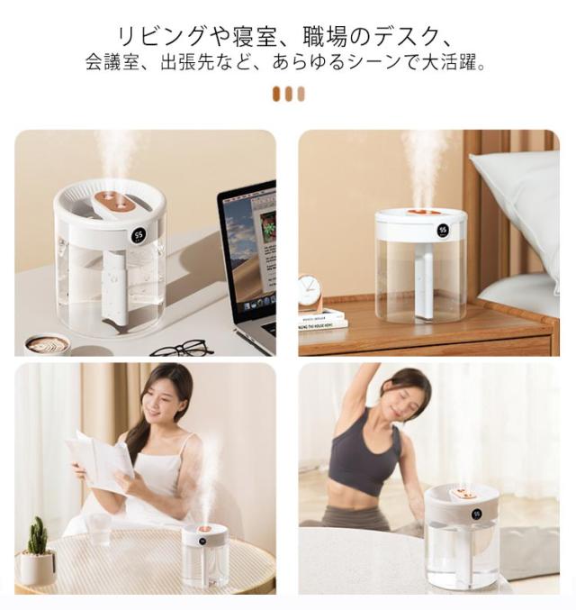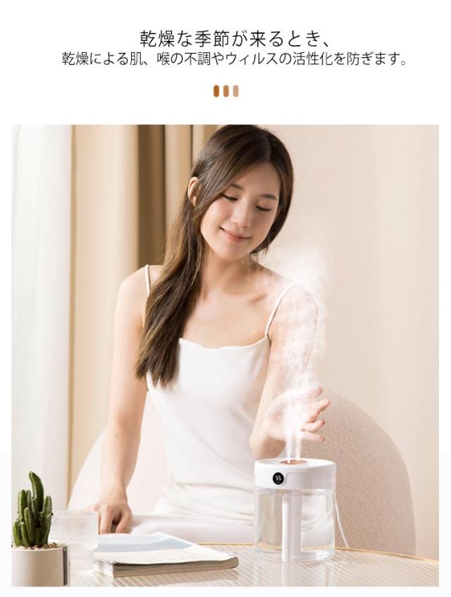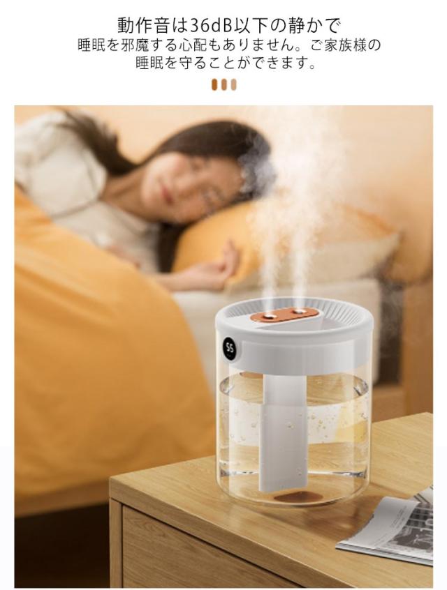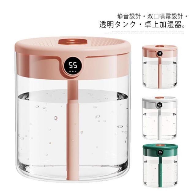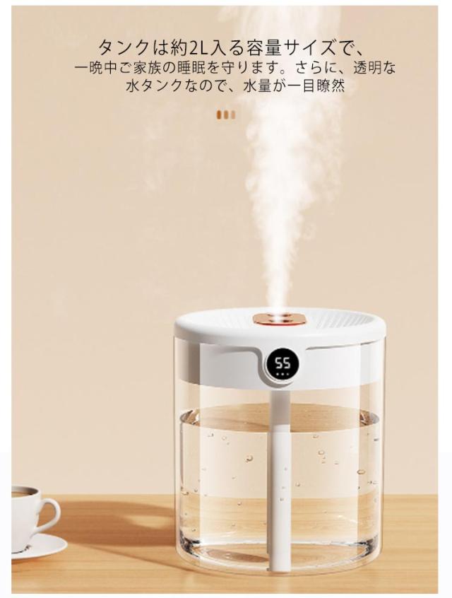 加湿器 超音波加湿器 大容量 2L 卓上 オフィス 小型 3つモード 卓上加湿器 双口ミスト ダブル噴霧口 USB給電式 10時間連続加湿 静音設計 空気清浄機 乾燥対策 コンパクト かわいい シンプル 上部給水 おしゃれ 省エネ 部屋 リビング