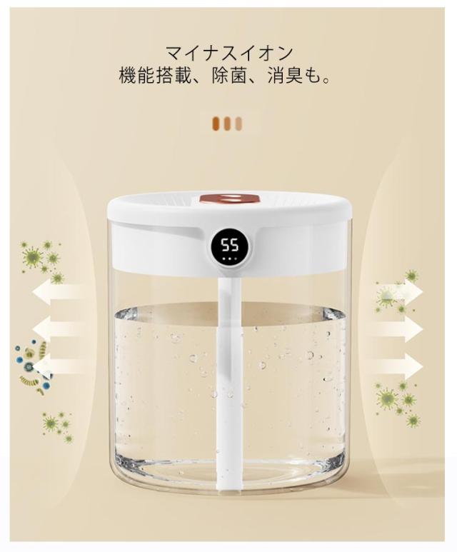 | サイズについての説明 | サイズ:131*131*152mm 長時間稼働:最大10時間保湿。 保湿量2倍:双口ミスト噴出。 USB接続 |
