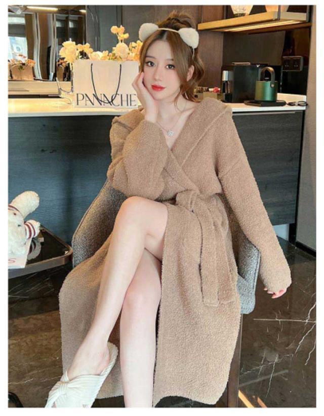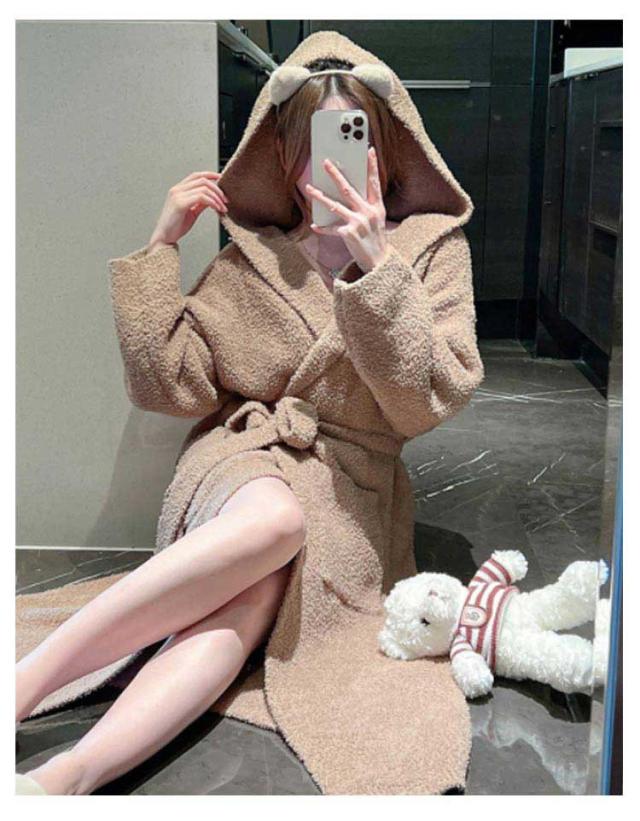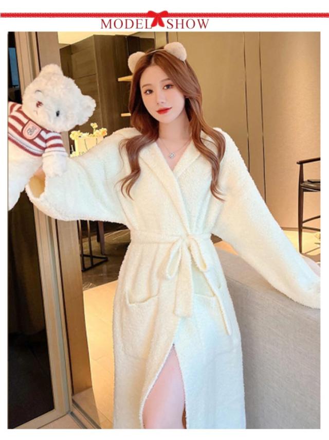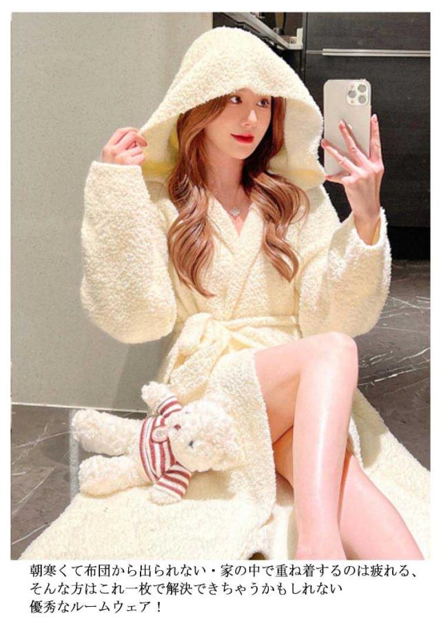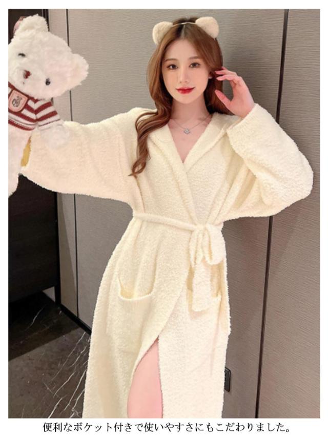 ルームウェア もこもこガウン レディース ナイトガウン ロングガウン 長袖 フード付き ロング丈 毛布 柔らかい かわいい 部屋着 お風呂上り 羽織 秋 冬 フリーサイズ 無地 全2色