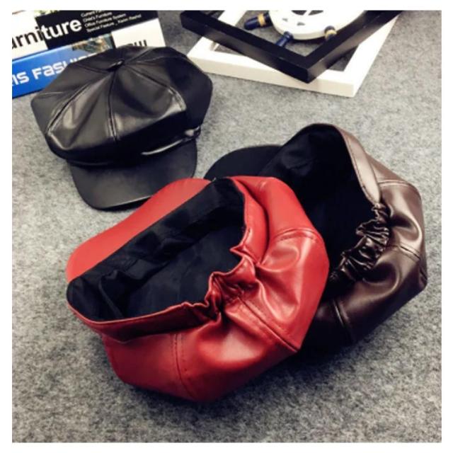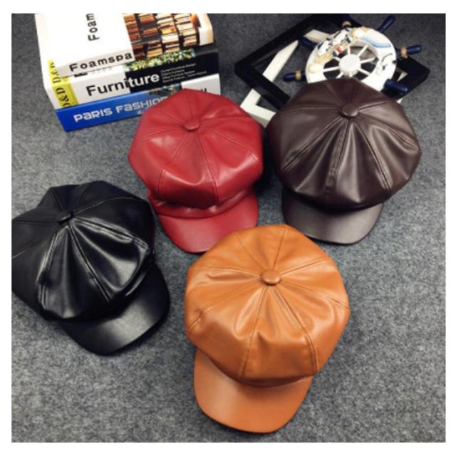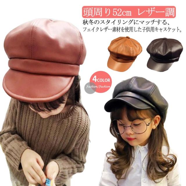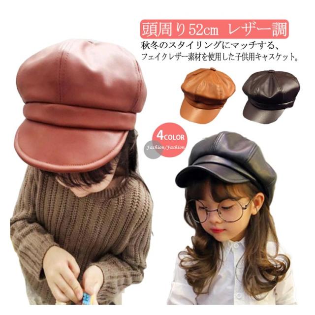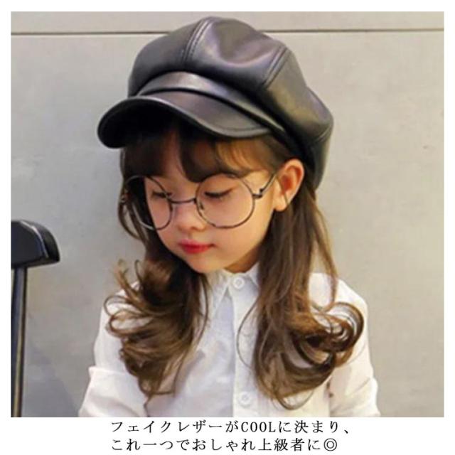 ベレー帽 キッズ キャスケット レザー調 後ろゴム入り フェイクレザー 子供キャスケット 子供用 女の子 女児 ガールズ 合皮 秋冬コーデ 無地 全4色