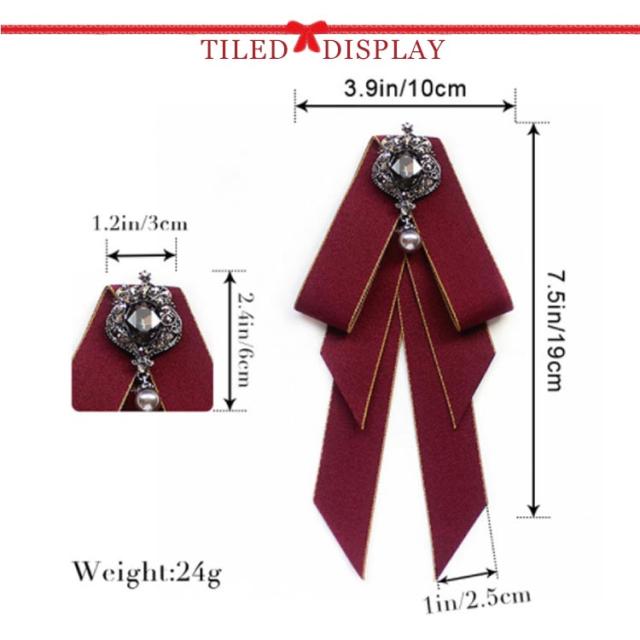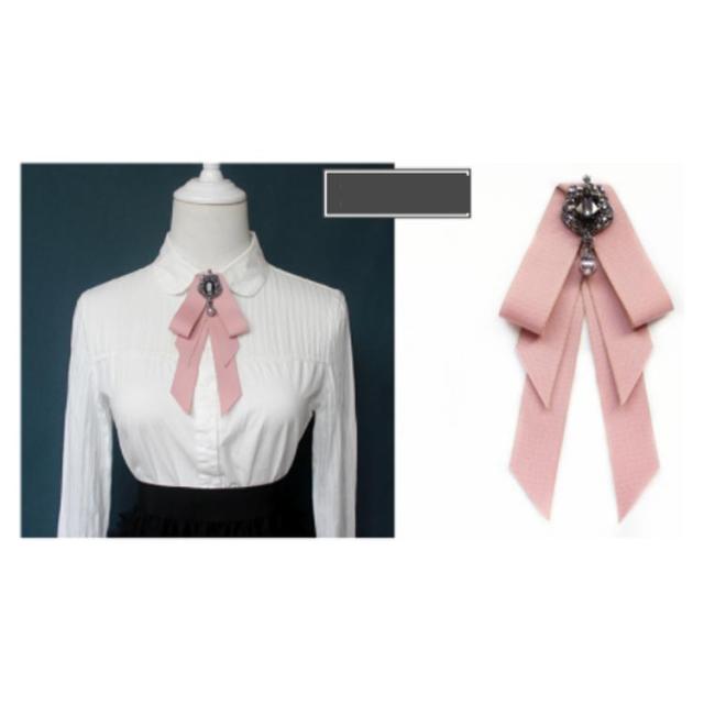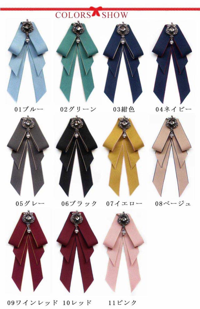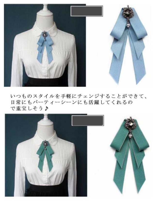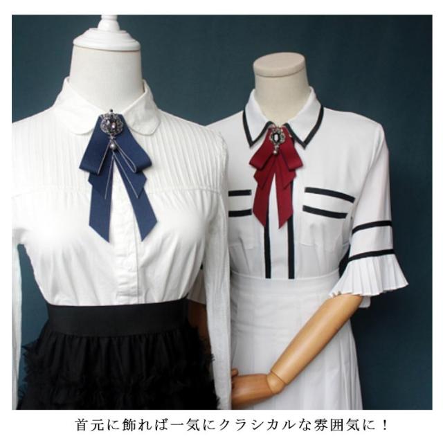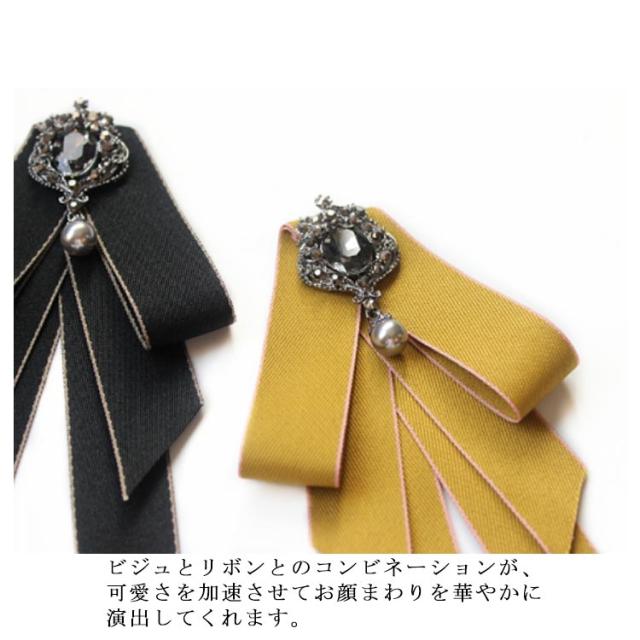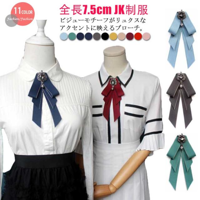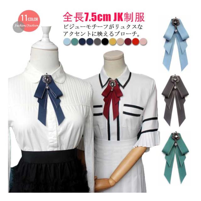 ビジュ付き リボンブローチ ネクタイ ブローチ JK制服 フェイクタイ ロングリボン ブローチピン レディース 学生 高校生 通学 コスプレ アクセサリー コスチューム 女子高生 jk 制服小物 卒業式 入学式 デイリー 結婚式 パーティー アクセサリー 全11色