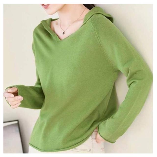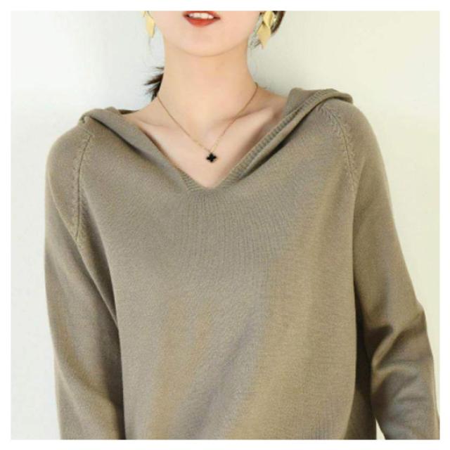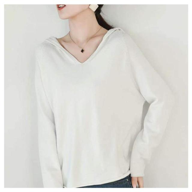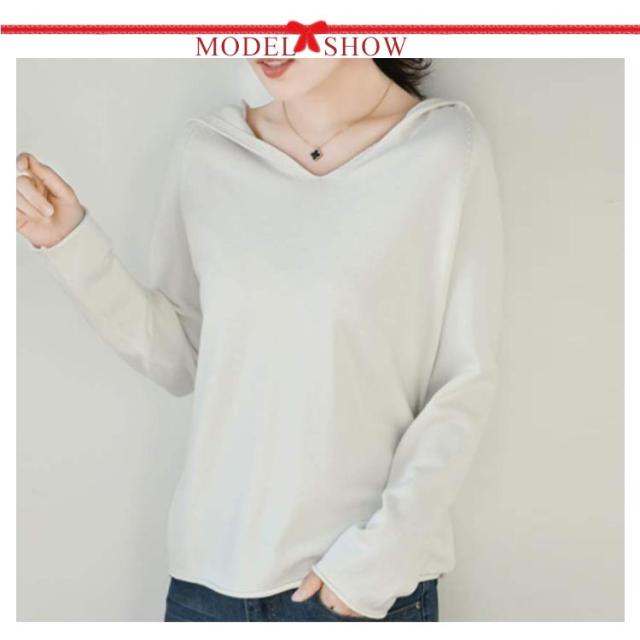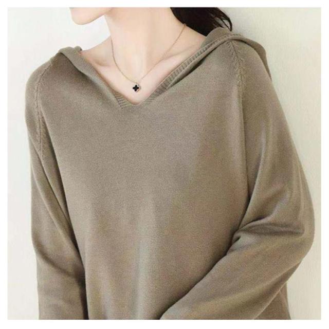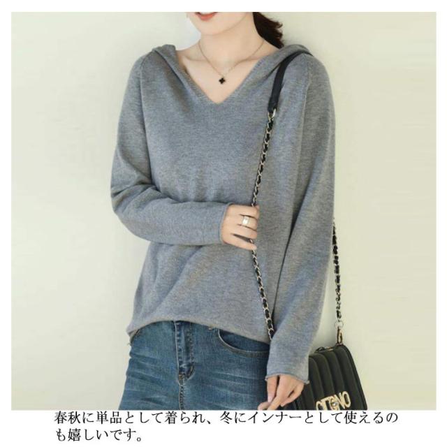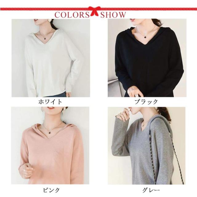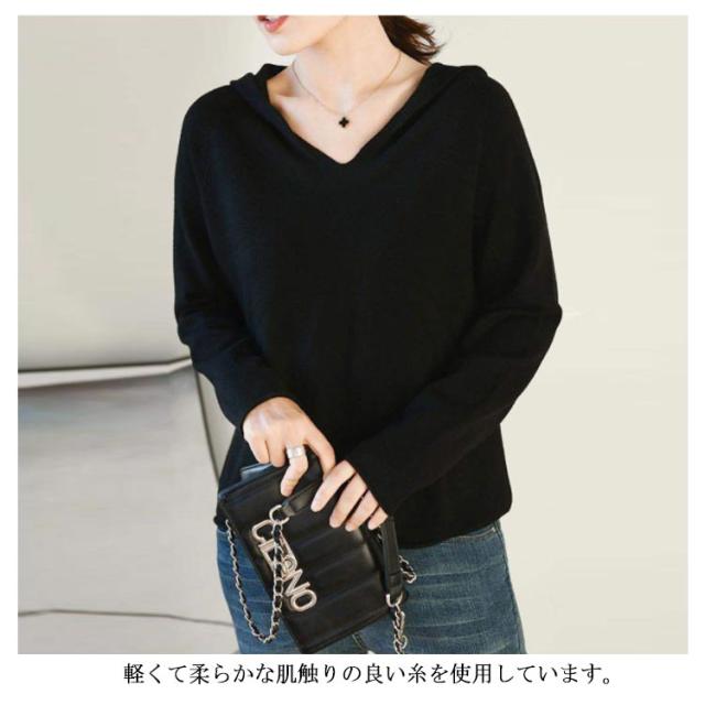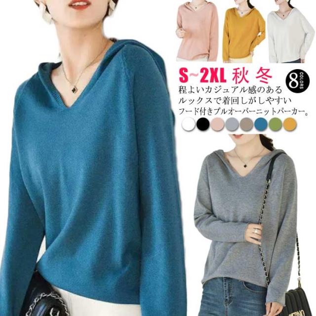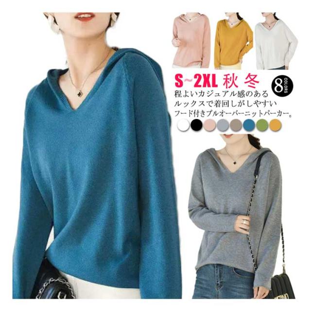 パーカー ニットパーカー レディース セーター トップス プルオーバー 長袖 Vネック フード付き フーディー プルオーバー 秋 冬 カジュアル 無地 全8色