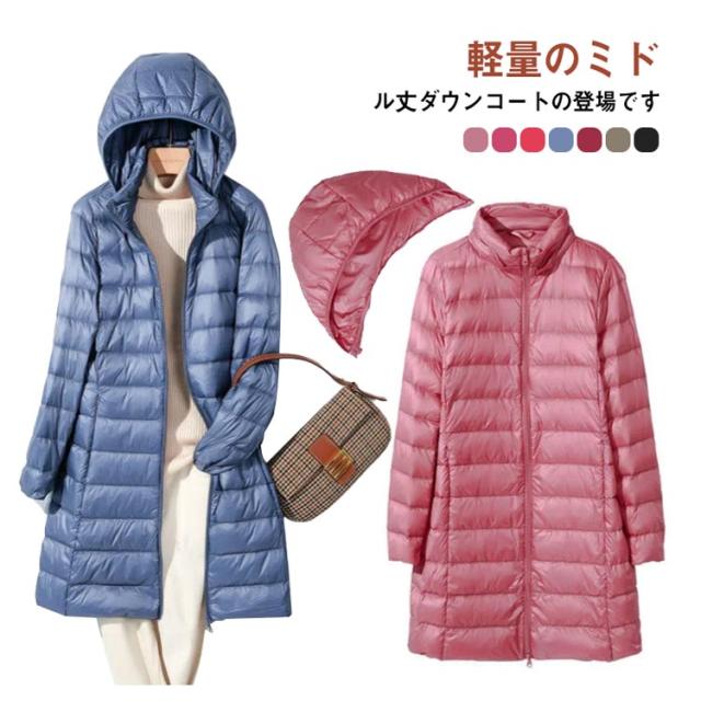 レディース ダウンコート 軽量 ロング丈 ダウンコート ロングジャケット ダウンジャケット 秋冬アウター ライトダウン ライトアウター フード付き 取り出し可 スリム 暖かい 大きサイズ M L XL 2XL 3XL 4XL 5XL