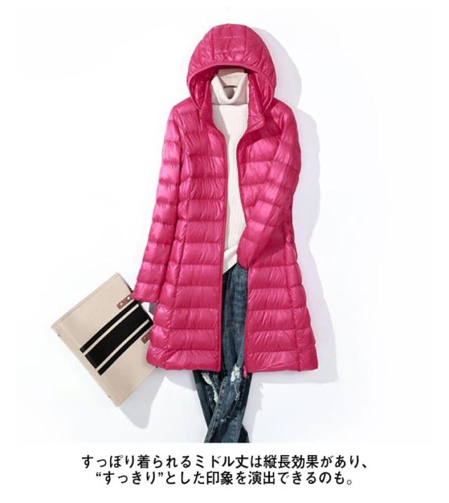| 軽量のミドル丈ダウンコートの登場です。 全7色展開、軽くて羽織りやすく、あたたかい。 すっぽり着られるミドル丈は縦長効果があり、“すっきり”とした印象を演出できるのも。 ライトダウンをたっぷり中に詰め込んでいるので、軽くて暖かさも抜群。 表地は超高密度の素材で、雨風寒さからしっかり身体を守ります。 毎日のスタイリングに馴染みやすいのでデイリーアウターにオススメの一着です。 | |