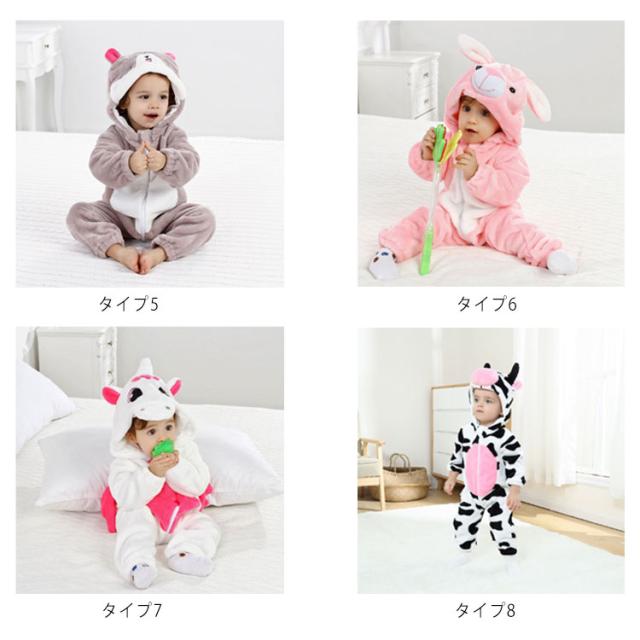 ルームウェア ベビー用 着ぐるみ パジャマ アニマル 赤ちゃん 前開き フード付き 秋冬 あったか 防寒着 長袖 ふわふわ 寝巻き 部屋着 男の子 女の子 もこもこ カバーオール 送料無料