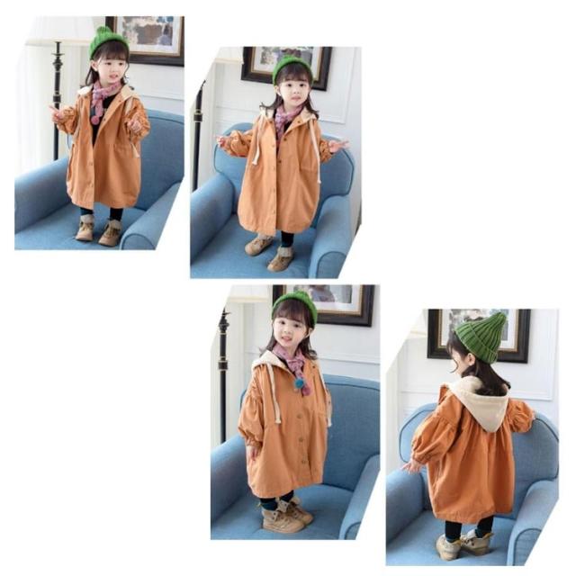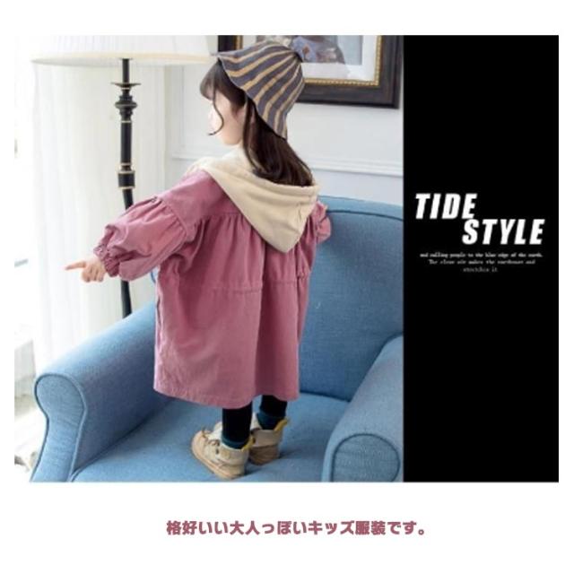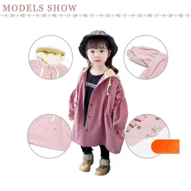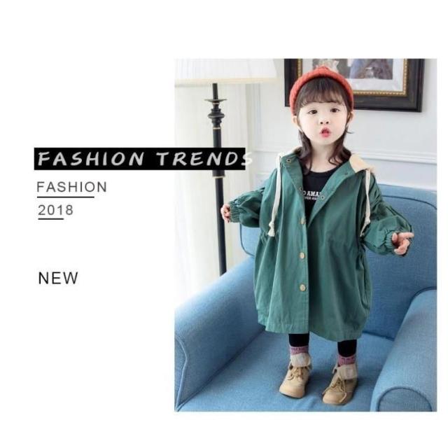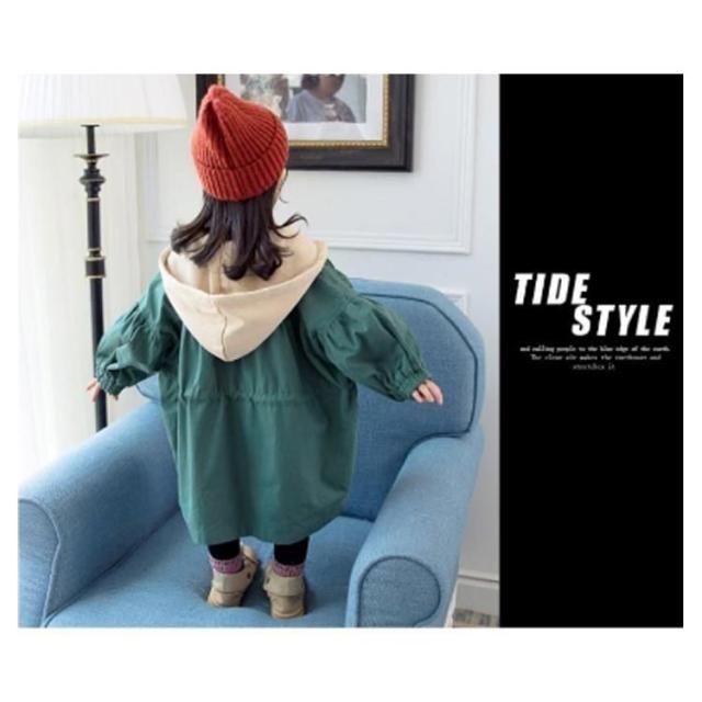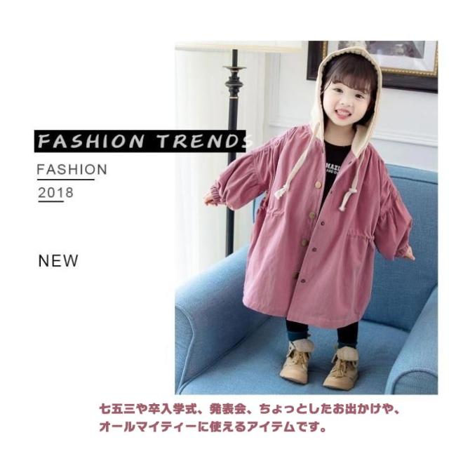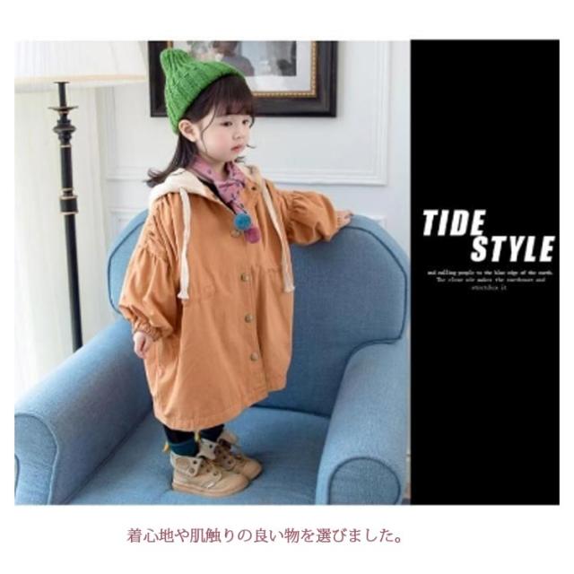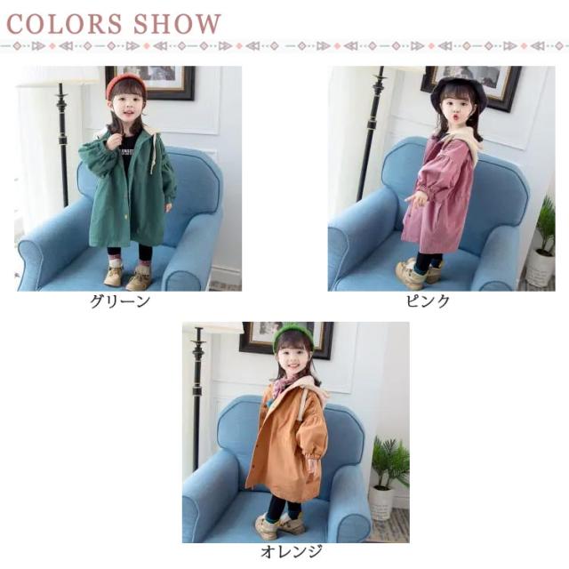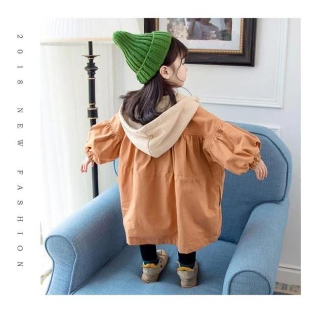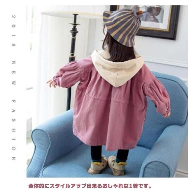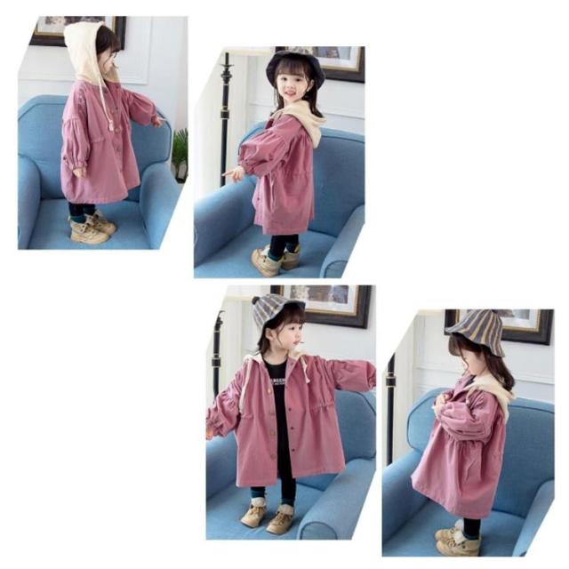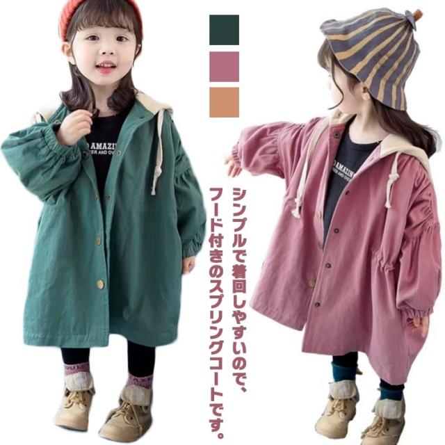 キッズ トレンチコート スプリングコート 長袖 子供服 コート 女の子 ジュニア ジャケット カジュアルコート ライトアウター ボリューム袖 フード付き かわいい おしゃれ 春服 秋服 80 90 100 110 120 130
