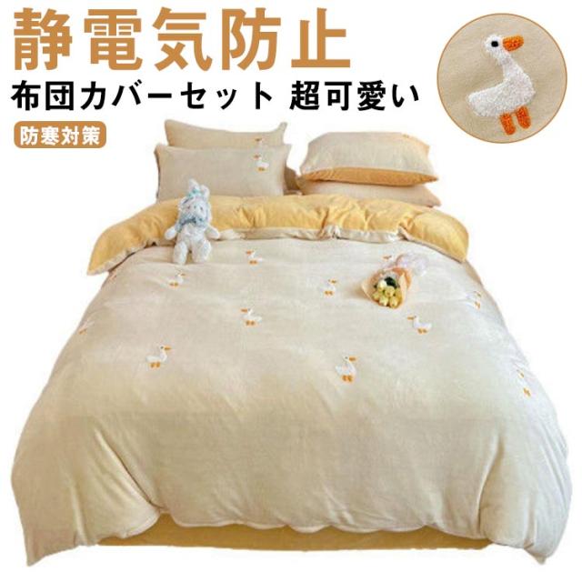 布団カバーセット 3点 シングル 厚手 超可愛い アヒル柄 3点セット 掛け布団カバー フラットシーツ 枕カバー 子供 大人 肌触り 静電気防止 洗える 防寒対策 寝具カバーセット 誕生日プレゼント