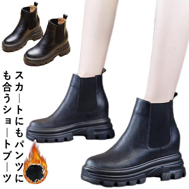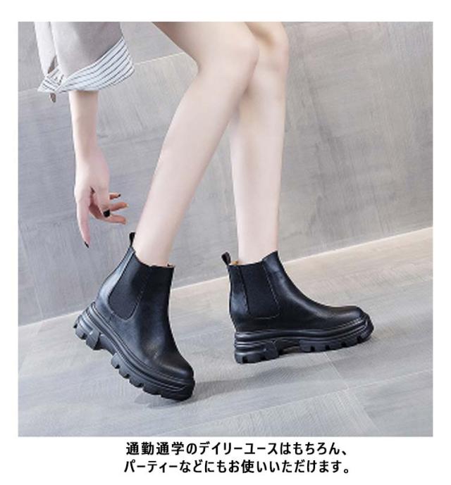 ブーツ レディース サイドゴアブーツ ショートブーツ 牛革 本革 ショートブーツ 厚底 ぺたんこ 歩きやすい ヒール8cm 身長アップ フラット コスプレ 大きいサイズ ハンサムシューズ 疲れない ブーツ 厚底 ブーツ おしゃれ 黒 ブラック 21.5〜24.5cm
