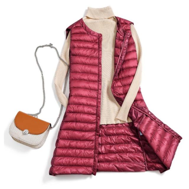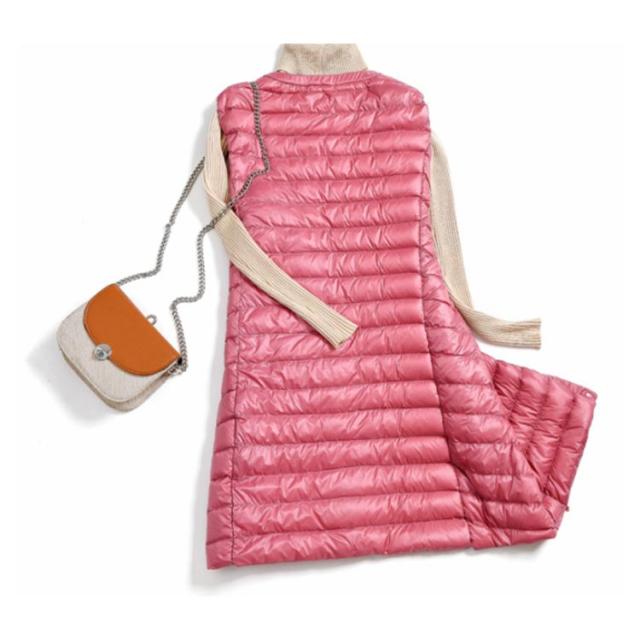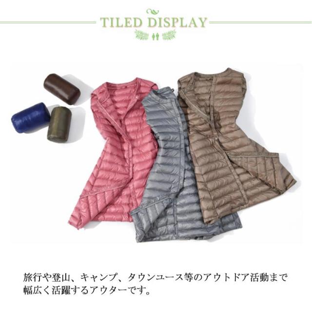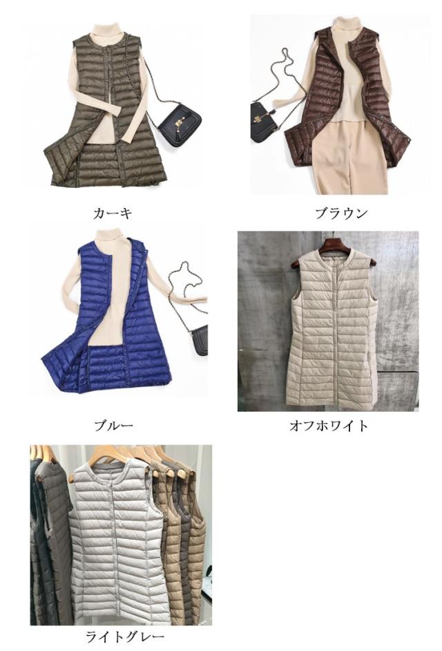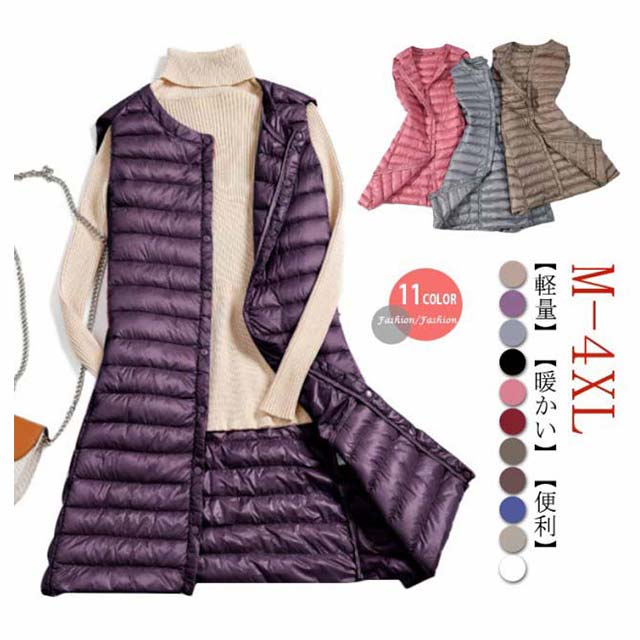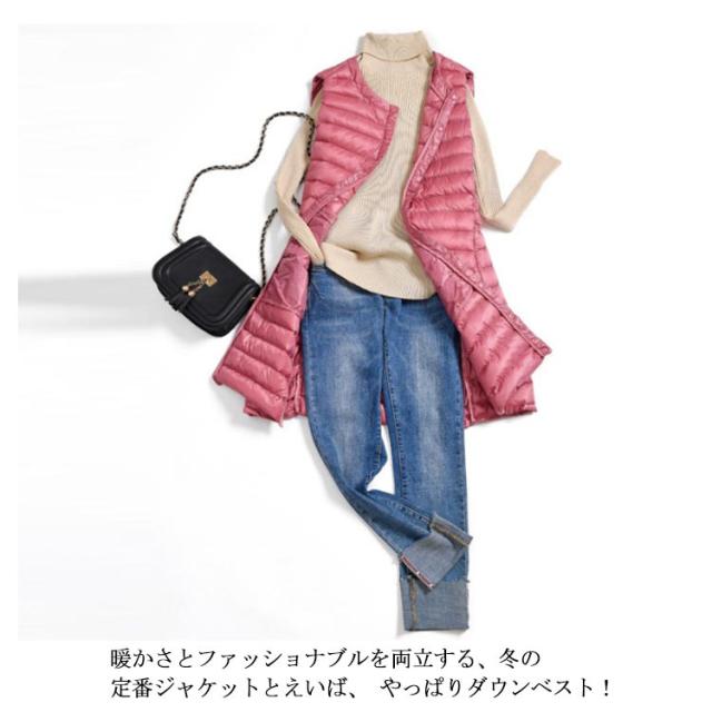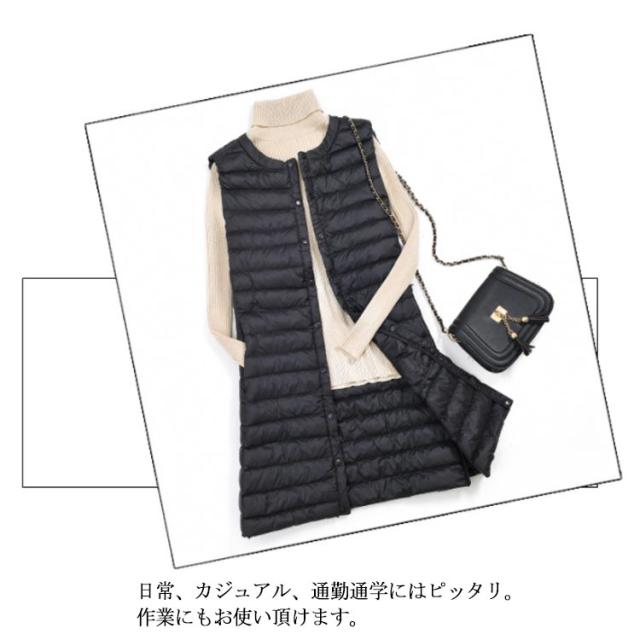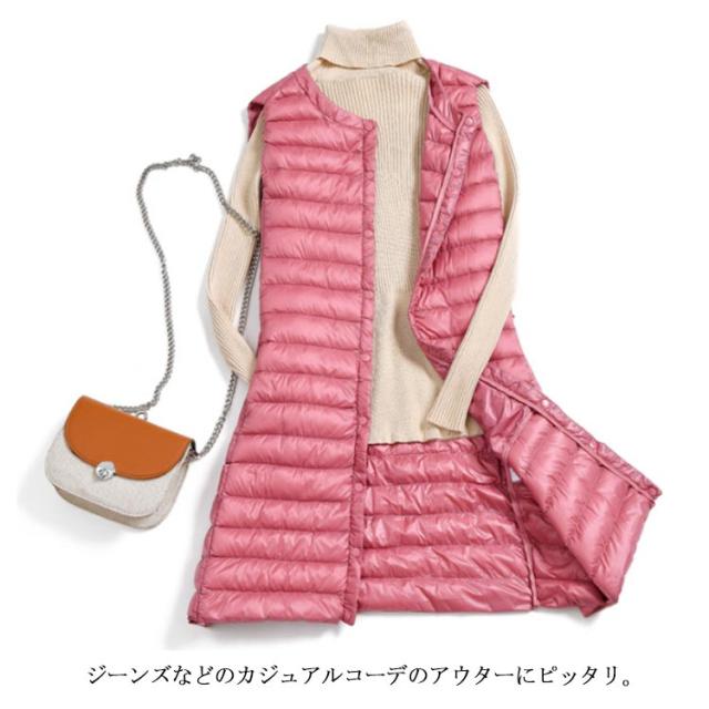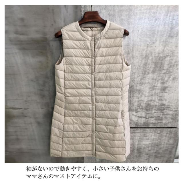 レディース ロングダウンベスト ロング丈 軽量 ダウンコート ノーカラー インナーダウン 超軽量ダウンベスト レディース ライトダウン 無地 アウター ゆったり 大きいサイズ 送料無料