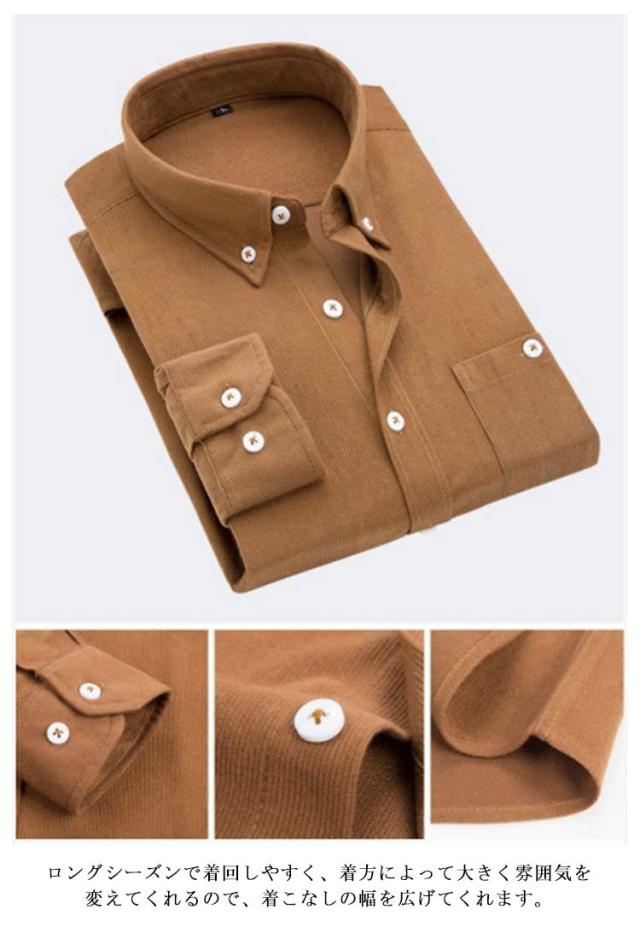 メンズシャツ コーデュロイシャツ ボタンダウンシャツ 秋冬無地 ウエスタン調 クラシカル ポップ コールテン 長袖 大人暖かいカジュアル メンズ ビジネスに使いやすい定番カラー!
