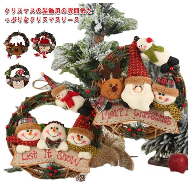 クリスマスリース ぬいぐるみ クリスマス リース 壁飾り ドア飾り ドアリース クリスマス サンタ 雪だるま トナカイ 造花 アートフラワー 玄関 インテリア 壁掛け 飾り アクセサリー プレゼント ギフト 家庭用 贈り物