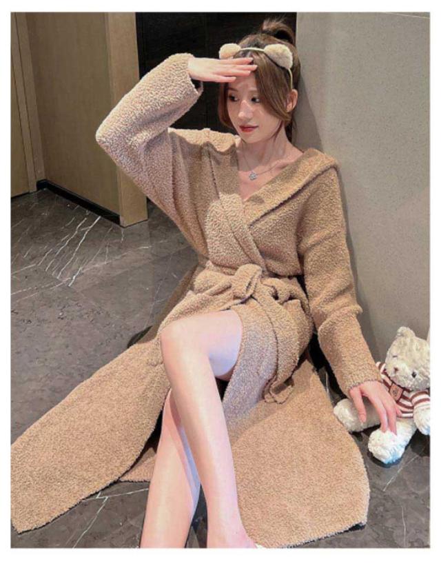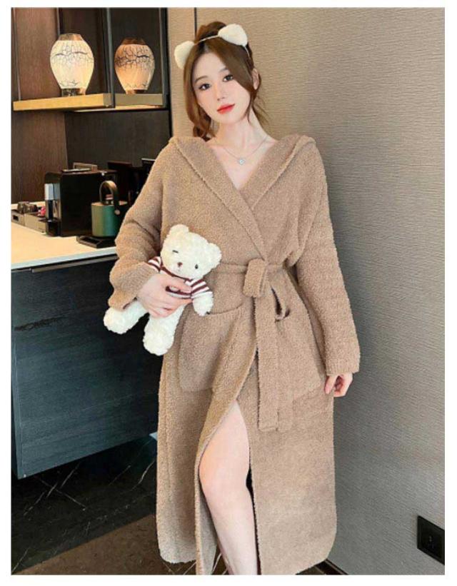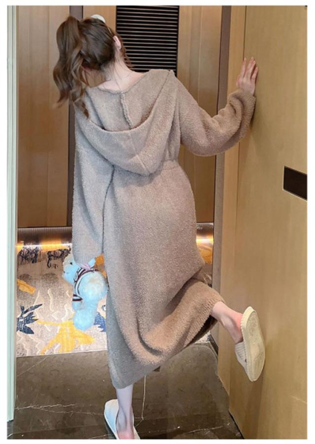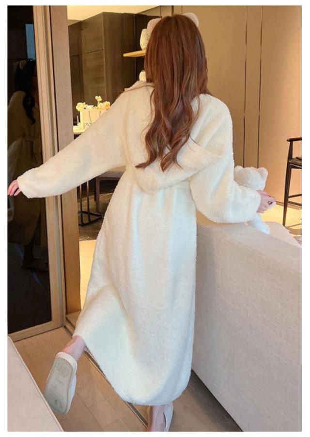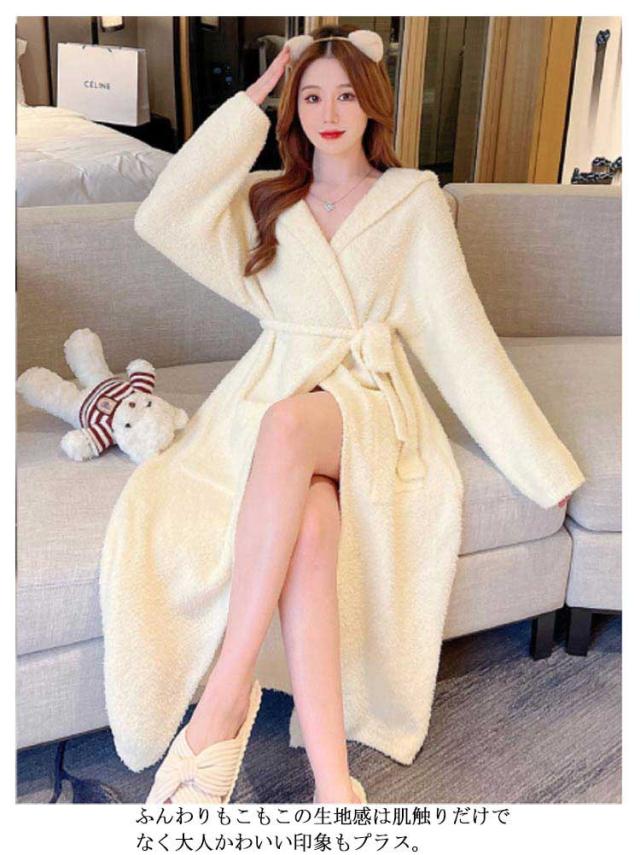 ルームウェア もこもこガウン レディース ナイトガウン ロングガウン 長袖 フード付き ロング丈 毛布 柔らかい かわいい 部屋着 お風呂上り 羽織 秋 冬 フリーサイズ 無地 全2色