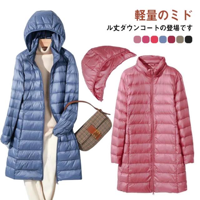 レディース ダウンコート 軽量 ロング丈 ダウンコート ロングジャケット ダウンジャケット 秋冬アウター ライトダウン ライトアウター フード付き 取り出し可 スリム 暖かい 大きサイズ M L XL 2XL 3XL 4XL 5XL